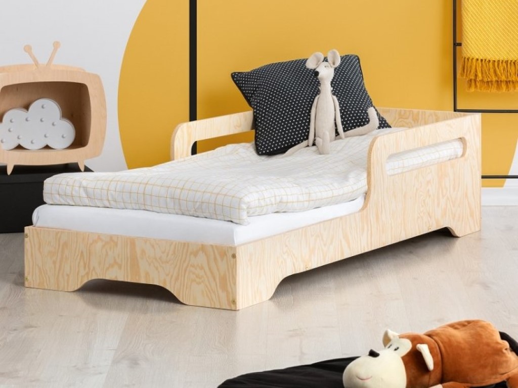 skandinávského typu je vyrobena z přírodního, čistého borovicového dřeva první jakosti (pouze podpůrné lišty pod lamely jsou vyrobeny z lisovaného materiálu). Dřevo je lepené pro větší pevnost a odolnost. Postýlky jsou do hladka ohoblované a kvůli bezpečnosti jsou všechny hrany strženy a zakulaceny. Originální design umožní dětem pohodlně vlézt i vylézt z postele ze tří stran. Praktická zábrana v hlavové části, s oválnými otvory pro lepší cirkulaci vzduchu, částečně ochrání děti před případným pádem z postele a brání vypadávání polštářků a oblíbených plyšáků, kteří dohlíží na spokojený spánek vaší holčičky nebo chlapce z postýlky.