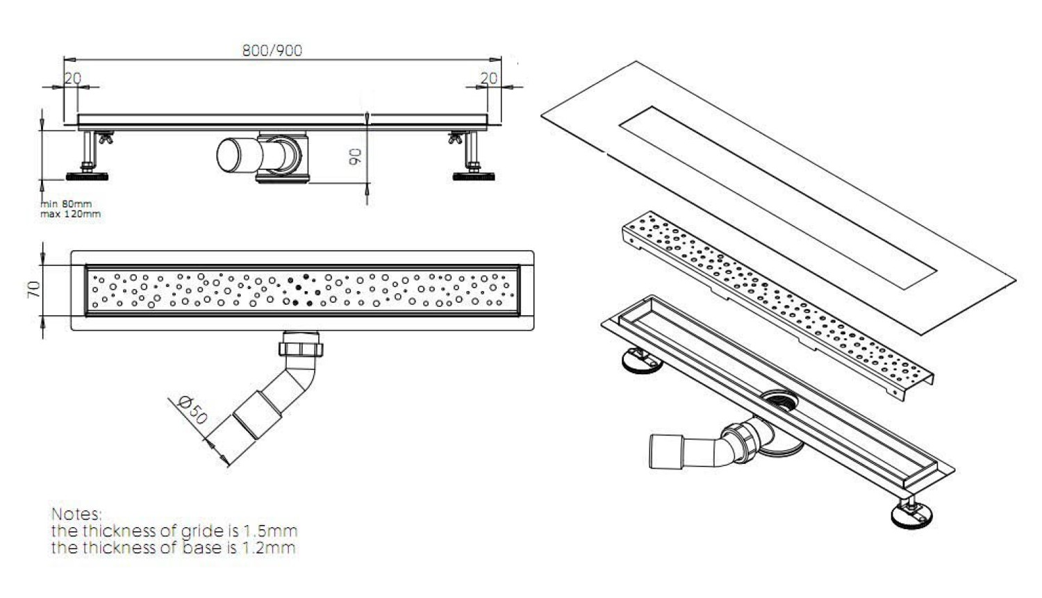 Horizontální lem pro napojení hydroizolace. Odtokový průtok: 30 l/min Redukce DN40/DN50 pro napojení odpadního potrubí je součástí balení. Butylová páska vyztužená PES rounem pro snažší napojení na hydroizolaci je součástí balení. Žlab je vyspádován do středu pro lepší odvod vody.Odtokový žlab slouží k odvodnění podlahových ploch uvnitř budov, zejména sprchových koutů a koupelen. Ve sprchových koutech nahrazuje vaničku nebo podlahovou vpusť. Toto řešení umožňuje neomezenou velikost…
