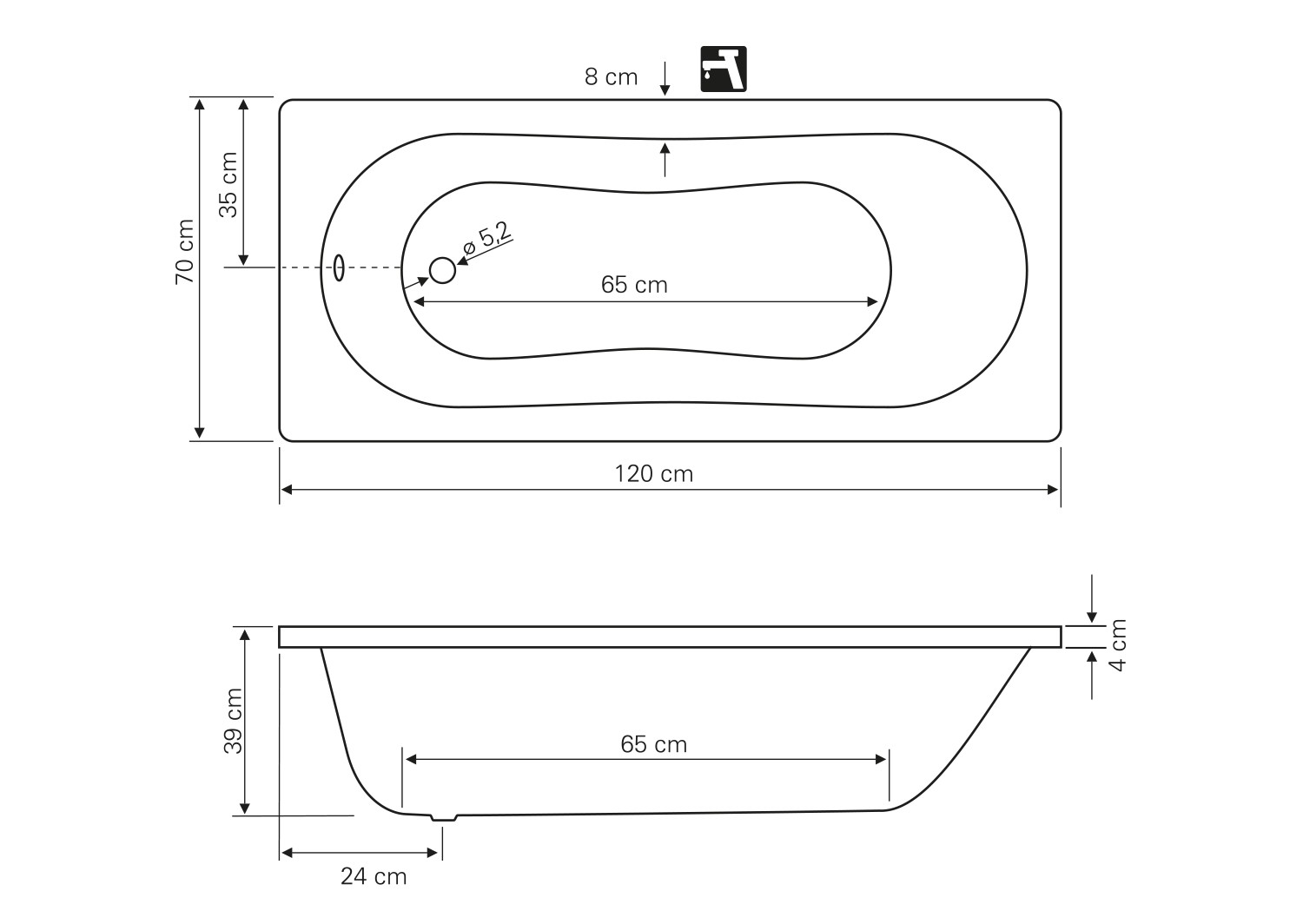 1 345 KčAQUALINE – JIZERA vana 120x70x39cm, bílá G1270