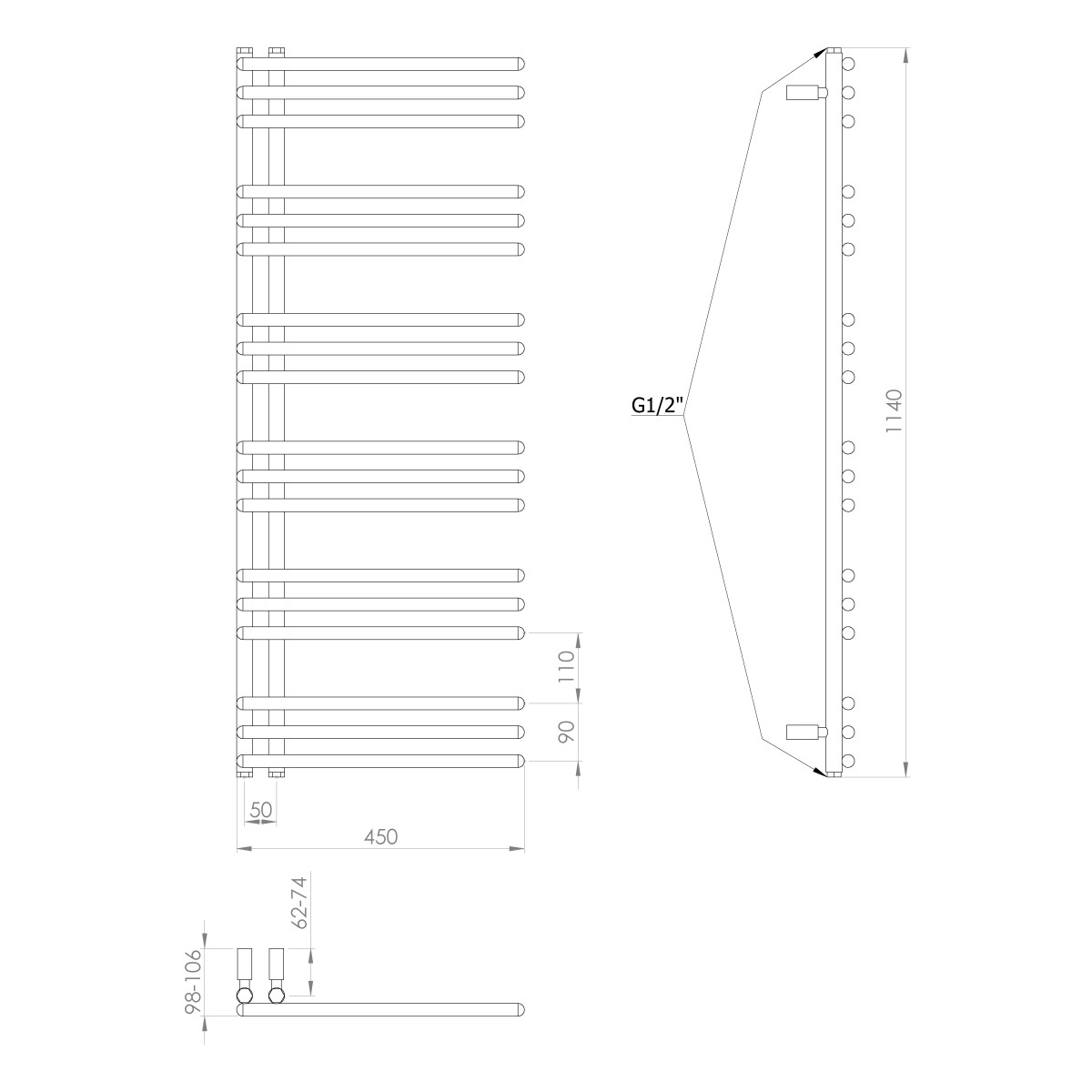 AQUALINE – POSEIDON otopné těleso 450×1140, černá mat PS411B