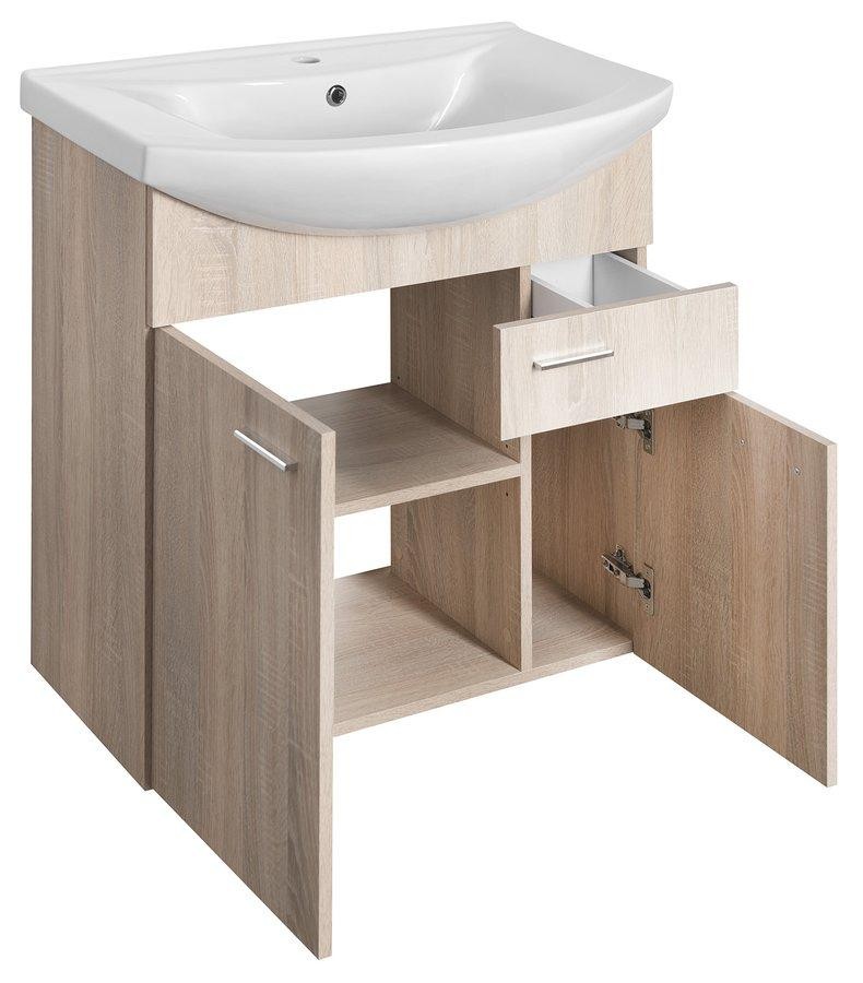 Umyvadlová skříňka AQUALINE ZOJA spojuje moderní design s praktickými funkcemi. S elegantním dekorem dub platin a kompaktními rozměry je ideálním řešením pro každou koupelnu.