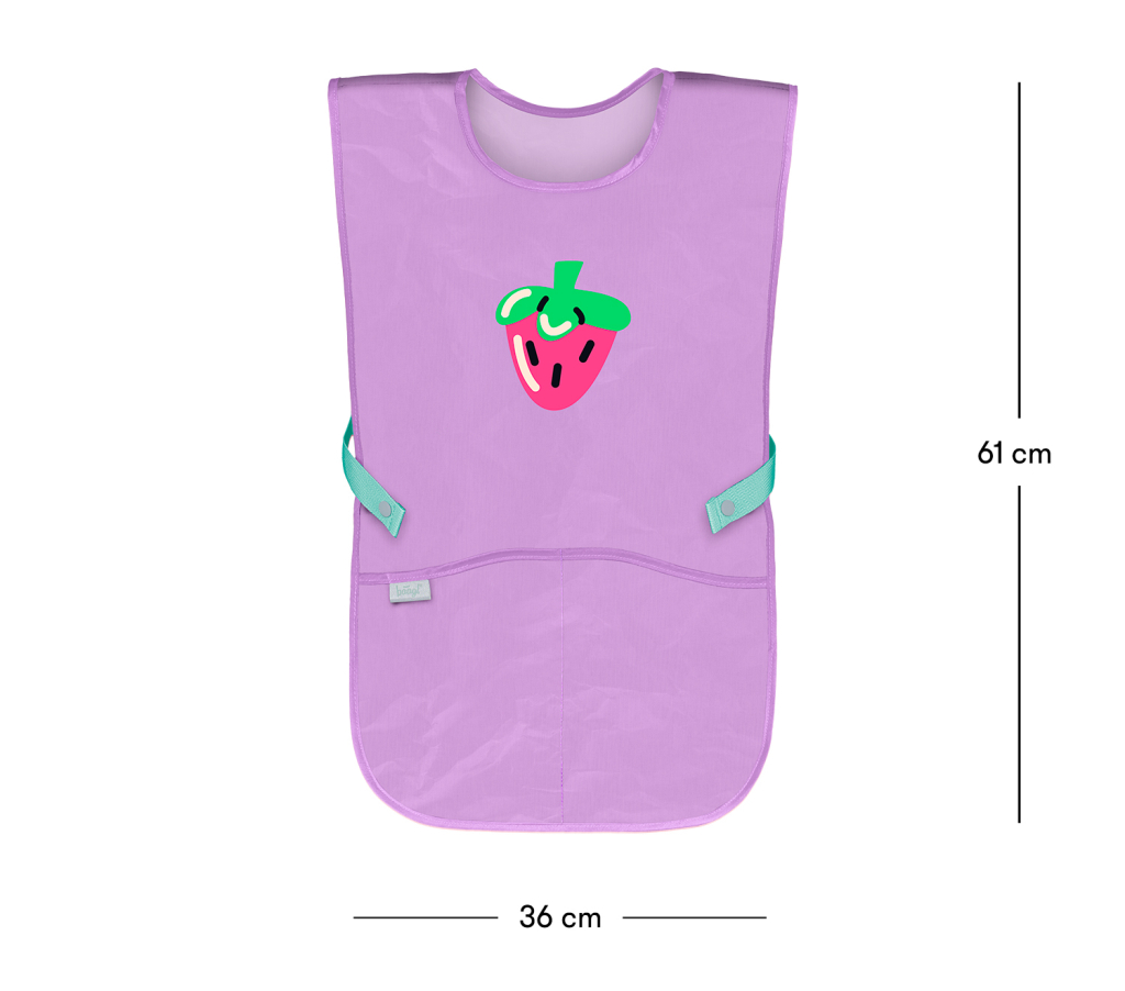 Výhody produktu Snadná údržba Zástěru stačí jednoduše otřít, což zajišťuje její dlouhodobou čistotu a připravenost k použití. Praktické kapsy Dvě kapsy na přední straně umožňují snadný přístup k drobným pomůckám jako pastelky nebo štětce. Odolný materiál Vyrobeno z 100% polyesteru, který je odolný a vhodný pro každodenní používání ve škole i doma. Atraktivní design Motiv ovoce na fialovém podkladu dodává zástěře veselý a stylový vzhled, který děti milují. Univerzální velikost Navržena pro děti od 6 let, zástěra se snadno přizpůsobí velikosti každého dítěte. Všestranné použití Ideální pro školní aktivity, výtvarné kroužky a domácí tvoření, zástěra je všestranným pomocníkem. K čemu je dětská zástěra vhodná? Zástěra je ideální na výtvarnou výchovu, pracovní činnosti, kroužky i domácí tvoření, kde chrání oblečení před ušpiněním. Jak se zástěra čistí? Zástěru lze snadno vyčistit vlhkým hadříkem díky omyvatelnému materiálu. Je zástěra nastavitelná? Ano, zástěra má univerzální velikost a její popruhy lze přizpůsobit podle potřeb dítěte. Jaké jsou rozměry zástěry? Zástěra má výšku 61 cm a šířku 36 cm.