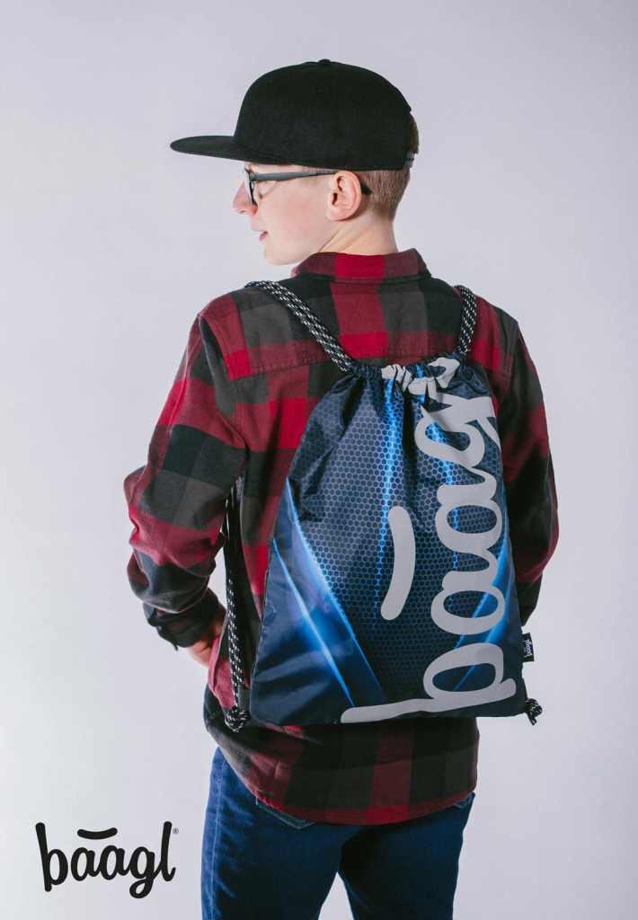 Černý stahovací textilní pytlík na přezůvky mohou školáci díky pevným tkanicím využít také jako batůžek a uložit do něho například vybavení na tělocvik nebo různé volnočasové aktivity. Pevný omyvatelný materiál usnadní jeho čištění.