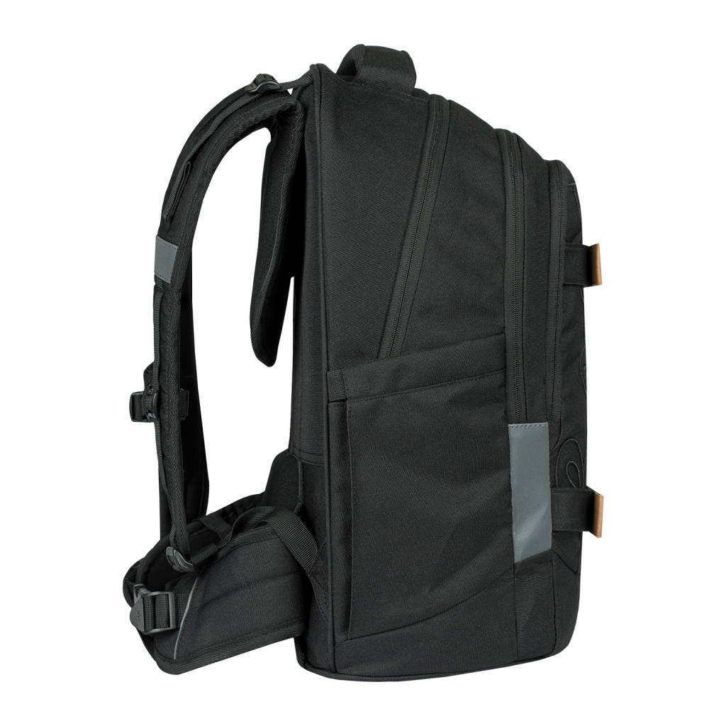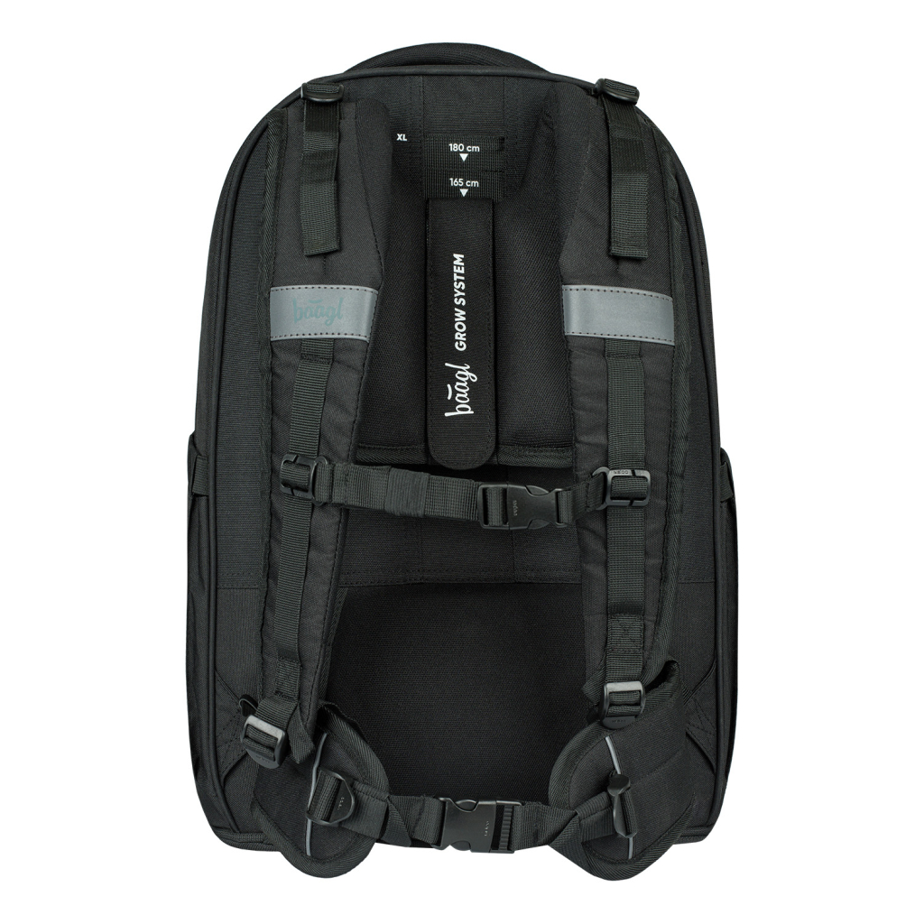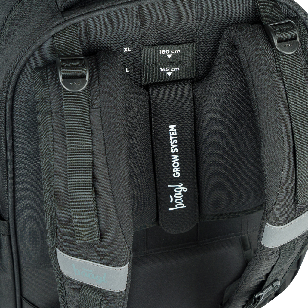 Ergonomický batoh Skate max Darkness s posuvným zádovým systémem, umožňuje nastavení až na čtyři různé velikosti, maximálně se tedy přizpůsobí postavě dítěte. Se svojí nízkou hmotností, pouhých 1150 g, je ideální pro žáky a studenty už od cca 3. třídy ZŠ, od 155 do 185 cm. Disponuje odnímatelným bederním pásem a díky speciální výztuži z EVA pěny perfektně drží tvar. Zesílené ucho batohu navíc zvyšuje jeho nosnost. V místech, kde se ramenní popruhy mohou dotýkat krku, je jemná síťovina na spodní straně mírně vytažena do svrchní části, což zajišťuje ochranu krku.