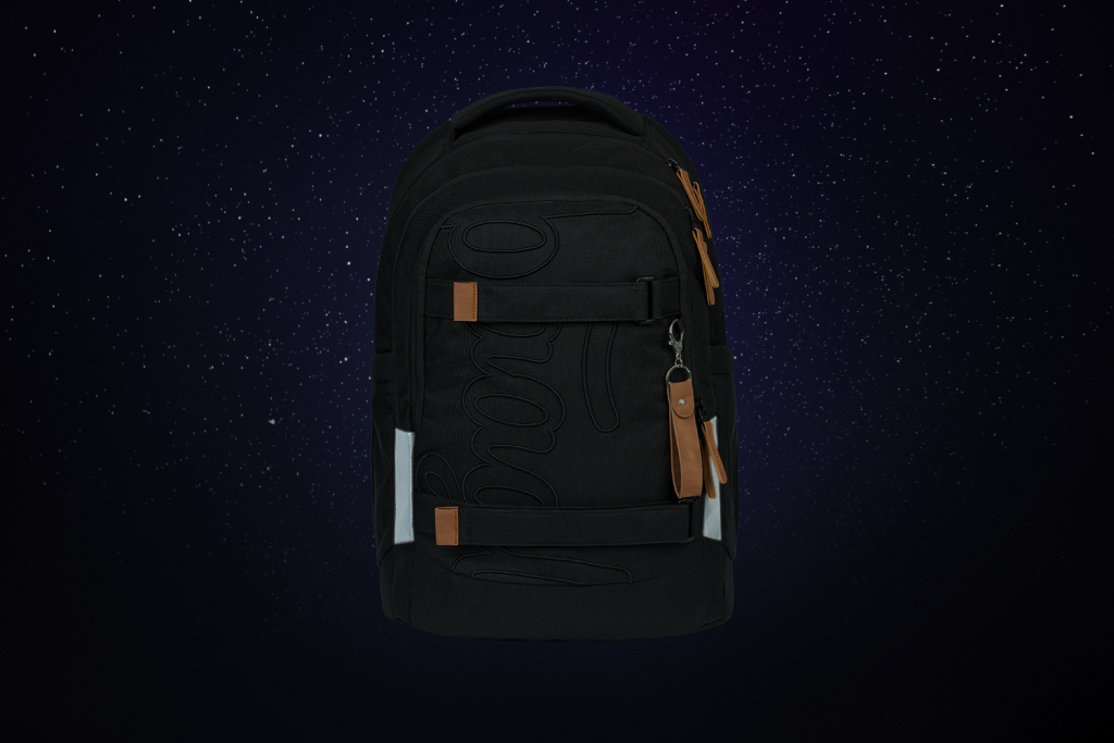 Batoh nabízí tři samostatně uzavíratelné komory s kapsou z jemného sametového materiálu, který ochrání notebook či tablet před poškrábáním. Dvoucestné zipy YKK zajistí snadný a rychlý přístup k obsahu batohu. Nechybí boční kapsy na láhev z pevného materiálu a přívěsek, který mohou děti nechat na batohu nebo ho využít jako klíčenku. Na přední komoře batohu jsou umístěné dva popruhy na uchycení skateboardu nebo třeba bundy. Samozřejmostí jsou reflexní prvky pro větší bezpečnost dětí.