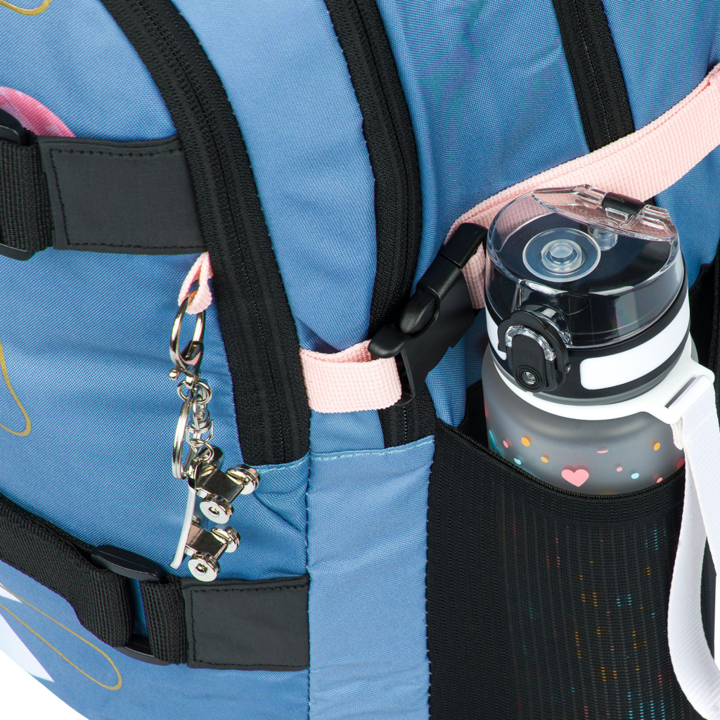 Přívěsek – součástí batohu je kovový přívěsek ve tvaru skatu.