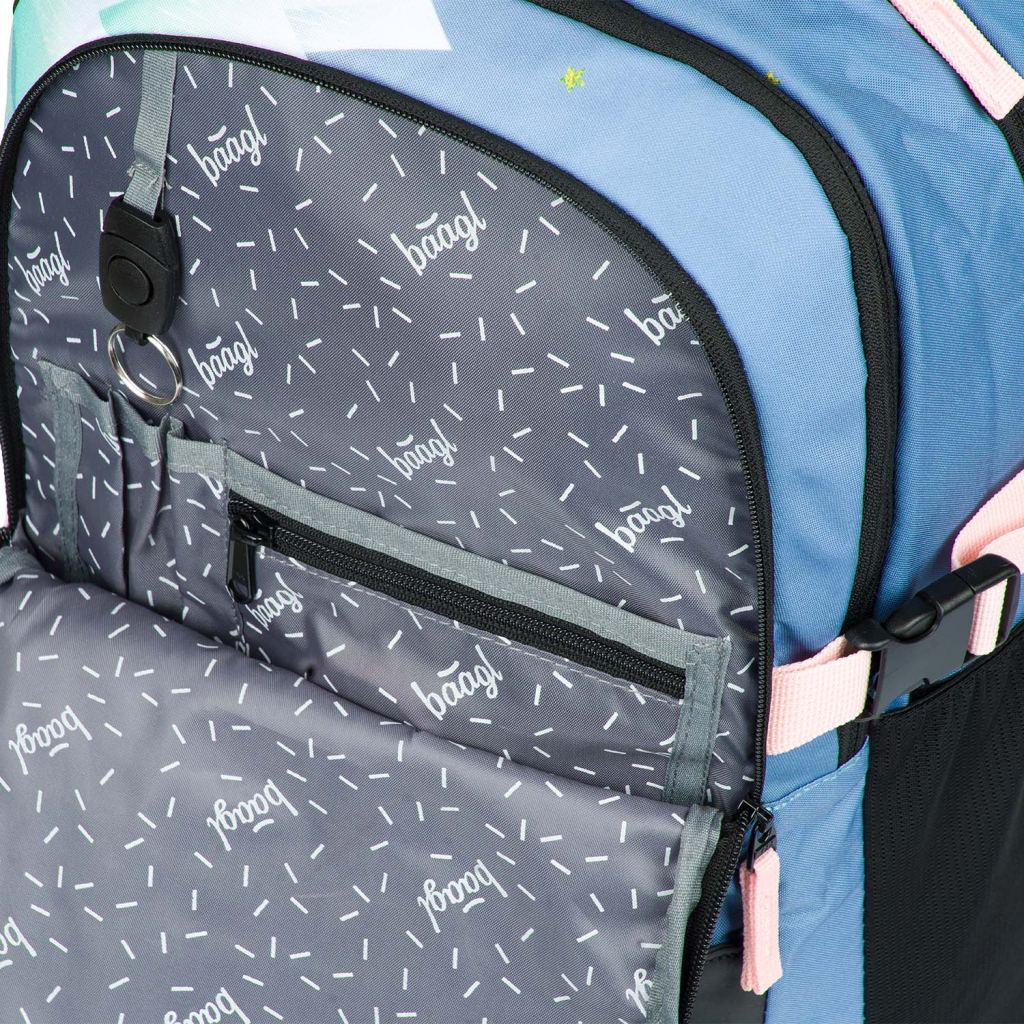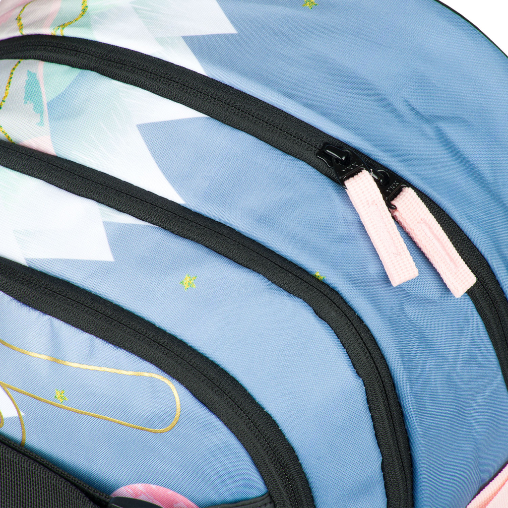 Batoh nabízí tři samostatně uzavíratelné komory s vnitřním organizérem a kapsou na 15palcový notebook či tablet. Nechybí boční kapsy na láhev z elastického materiálu a přívěsek ve tvaru skateboardu, který mohou děti nechat na batohu nebo ho využít jako klíčenku. Na přední komoře batohu jsou umístěny dva popruhy na uchycení skateboardu nebo třeba bundy. Samozřejmostí jsou reflexní prvky pro větší bezpečnost dětí.