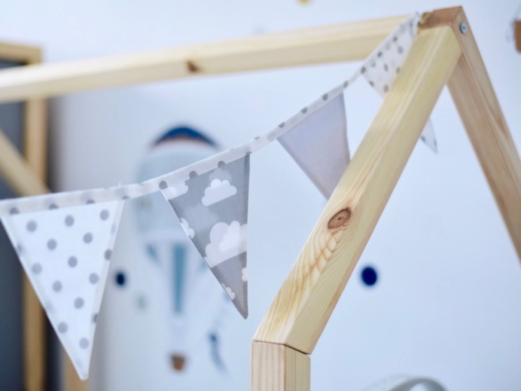 Rozměry dětské postýlky: 144 x 79,5 x 176 cm (délka x šířka x výška domečku).