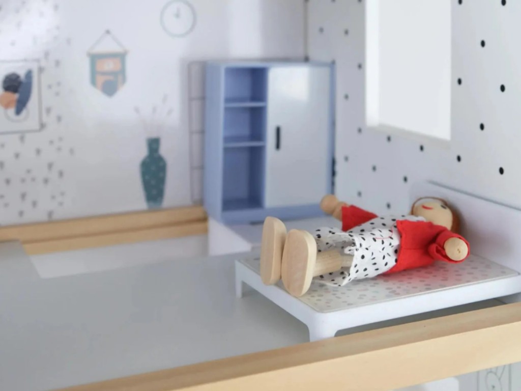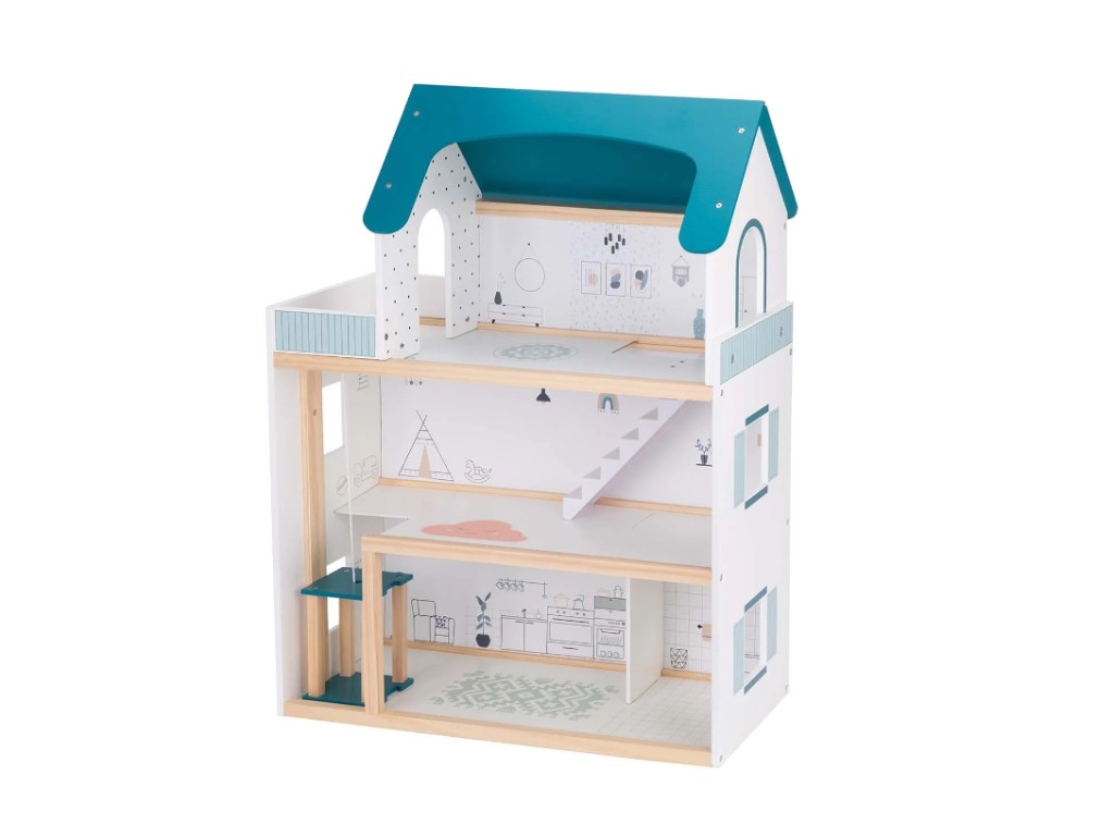 Neutrální barvy – díky neutrálním barvám v kombinaci se dřevem se domeček hodí do každého interiéru a jistě si s ním vyhrají nejen holčičky.