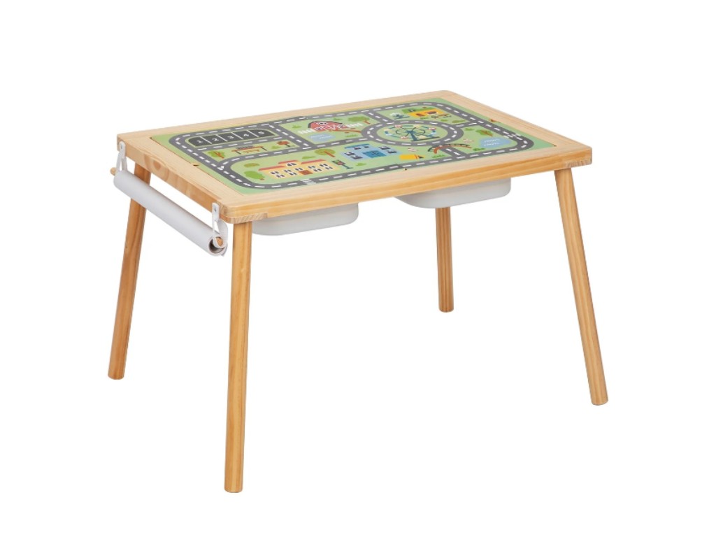 Multifunkční – stoleček je možné využít na hraní, na malování fixami na bílou stranu desky, na kreslení na papírovou roli nebo jako úložný stoleček.