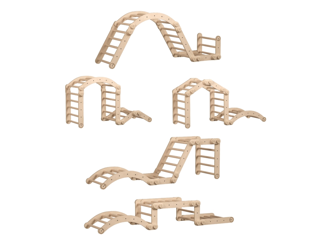 Polohovatelná a multifunkční prolézačkaFlexibilita pro každé dítěVelká skládací lezecká sestava se snadno přizpůsobí věku, odvaze a pohybovým schopnostem dítěte. Díky jednoduchému polohování bez nářadí ji můžete měnit na velký a malý Piklerové trojúhelník, domácí opičí dráhu či domeček a děti se tak nenudí ani po delší době. Navíc ji můžete při použití této sady upevnit ke stěně, jako žebřiny.Je vyrobena z kvalitního dřeva, zajišťuje bezpečné a dlouhodobé používání. Podporuje samostatné objevování, rozvoj jemné i hrubé motoriky a koordinace ruky a oka, čímž děti přirozenou formou zdokonalují své schopnosti a nabírají odvahu při pohybových aktivitách.Montessori principy v praxiPodpora samostatného rozvojeProlézačka je navržena podle Montessori principů, které kladou důraz na rozvoj hrubé motoriky a samostatné objevování. Děti si přirozeně zkouší své schopnosti, učí se balancovat, šplhat a zdokonalovat pohybové dovednosti.Je vhodná pro děti od 1 roku, podporuje logické myšlení, fantazii a kreativitu při hře. Díky univerzálnímu designu je ideální pro holky i kluky a nabízí spoustu možností, jak si děti mohou hravě rozvíjet pohybové schopnosti a koordinaci.Technické parametryObsah balení