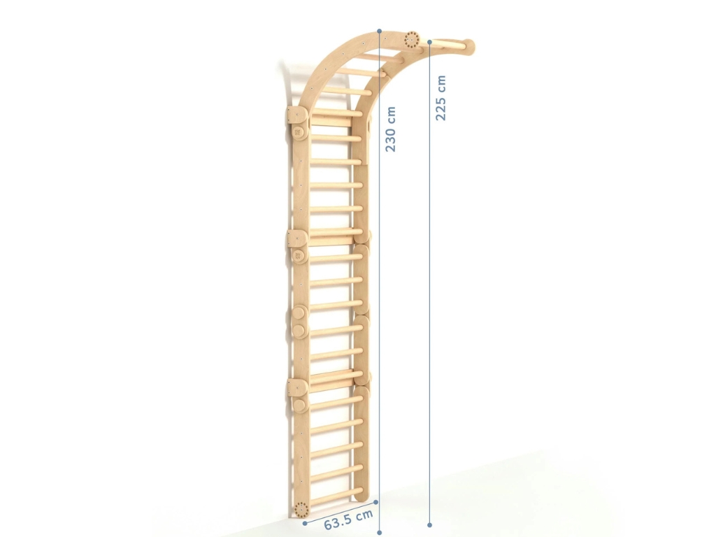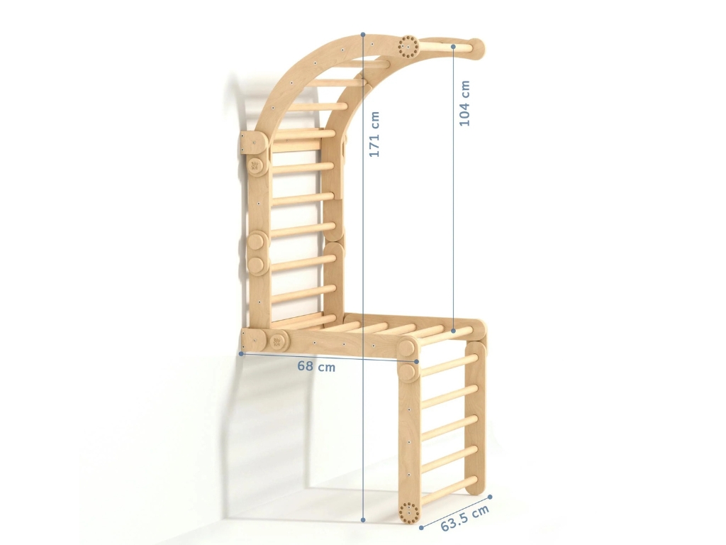 Bezpečné upevněníOdolnost a spolehlivostSada pro upevnění prolézačky/žebřin ke zdi zajišťuje pevné a bezpečné uchycení, které umožňuje dětem bezpečně šplhat, balancovat a hrát si bez rizika převrácení.Upevňovací prvky jsou vyrobeny z kvalitních materiálů, které odolají každodennímu používání a poskytují stabilní oporu pro všechny typy lezeckých aktivit.Univerzální použitíRychlá a intuitivní instalaceŽebřiny připevněné touto sadou jsou vhodné pro děti od 1 roku a podporují rozvoj hrubé motoriky, koordinace a logického myšlení. Produkt se díky neutrálnímu přírodnímu designu hodí k přírodní i duhové prolézačce/žebřinám.Montáž se sadou je jednoduchá a intuitivní, takže prolézačku lze bezpečně připevnit ke zdi i bez zkušeností s podobnou instalací. Po upevnění se konstrukce promění ve stabilní žebřiny.Technické parametryDetailní specifikacePomocí sady připevníte ke stěněProlézačku/žebřiny 2v1 – natur