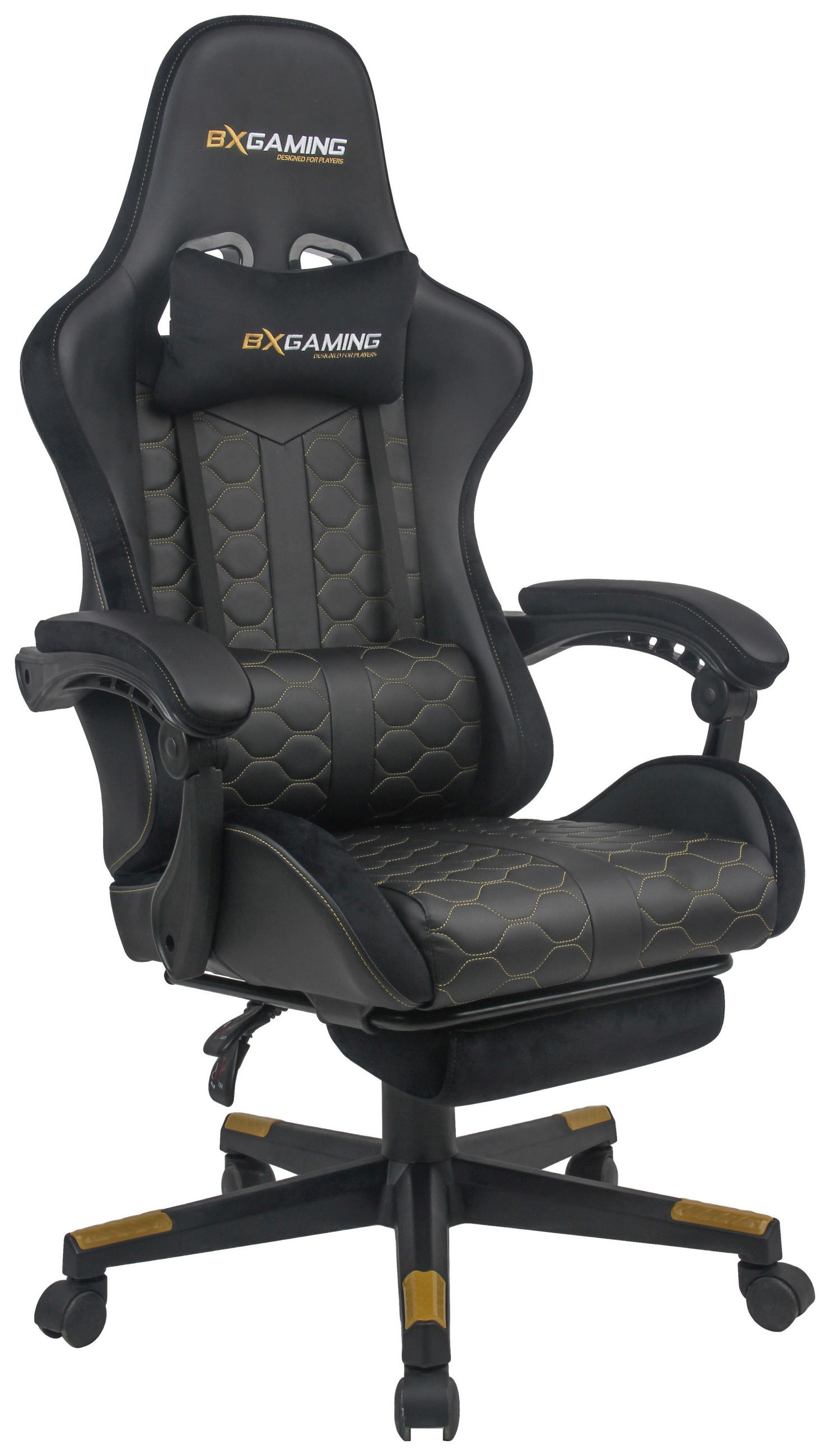 HERNÍ ŽIDLE, vzhled kůže, samet, černá – TYP: NV-9398A-4, – ČERNÝ POTAH, ZLATÉ PROŠITÍ, – NOSNOST 140 KG,