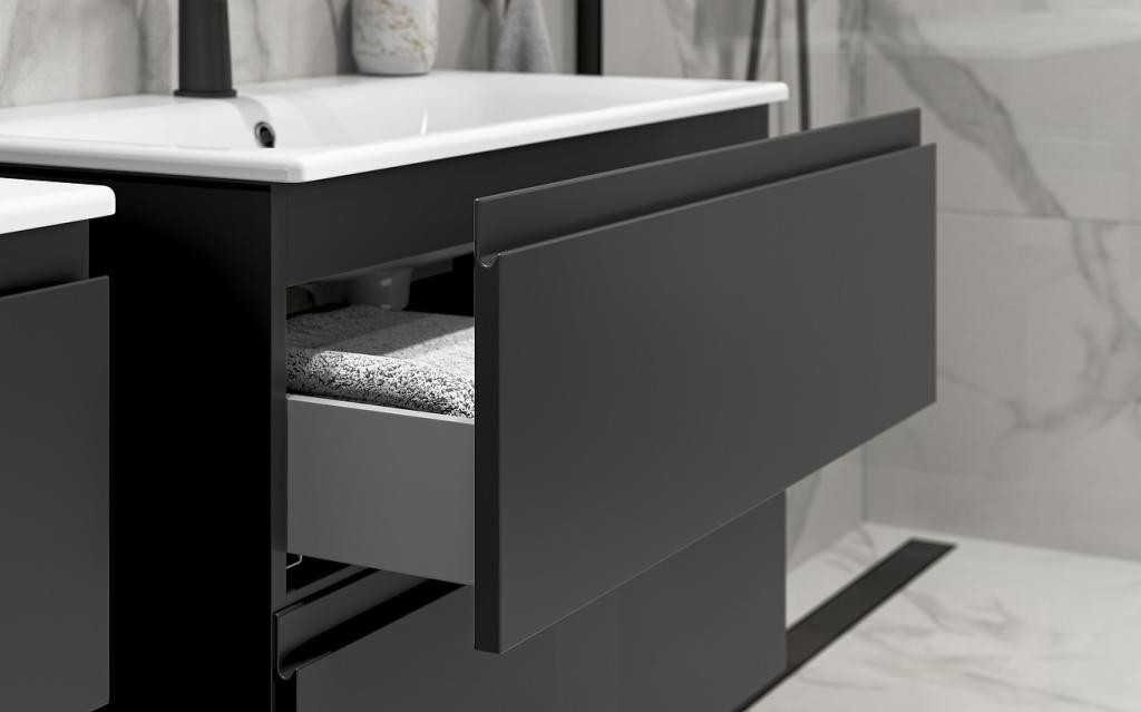Umyvadlová skříňka MODUO v elegantní antracitové barvě přináší moderní design a praktické řešení do vaší koupelny. S tichým zavíracím systémem a možností kombinace s různými umyvadly je ideální volbou pro útulný domov.