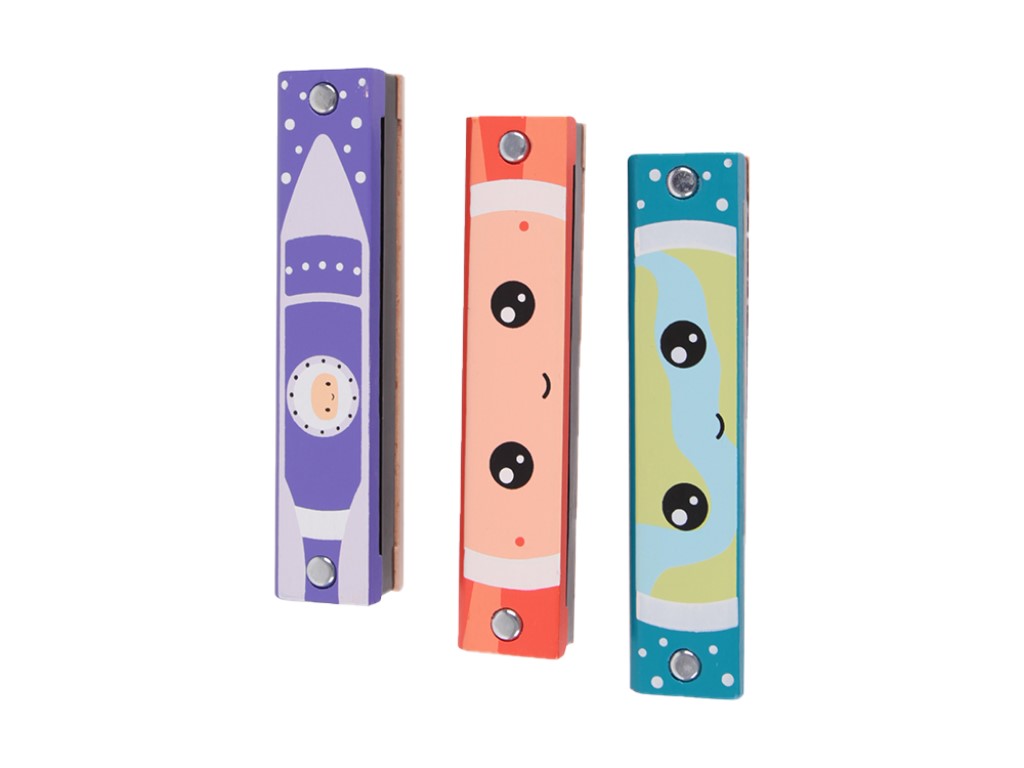 Hudební nástroj pro děti – foukací harmonika přinese dětem spoustu zábavy. Tento malý a praktický dechový nástroj mohou děti nosit stále u sebe a dělat radost svou hudbou nejen vám doma, ale i kamarádům na návštěvě nebo venku na zahradě. Dětská foukací harmonika dobře padne do dětské ručky, dobře se dětem drží a snadno se s ním manipuluje. Hra na harmoniku není nijak složitá a děti rychle přijdou na to, jak se na tento hudební nástroj hraje. Při hře na foukací harmoniku se děti seznamují s hudbou, s tóny, se zvuky, jak vznikají, stimulují své smysly. Vybírat můžete z více barevných variant s vesmírnou tématikou.