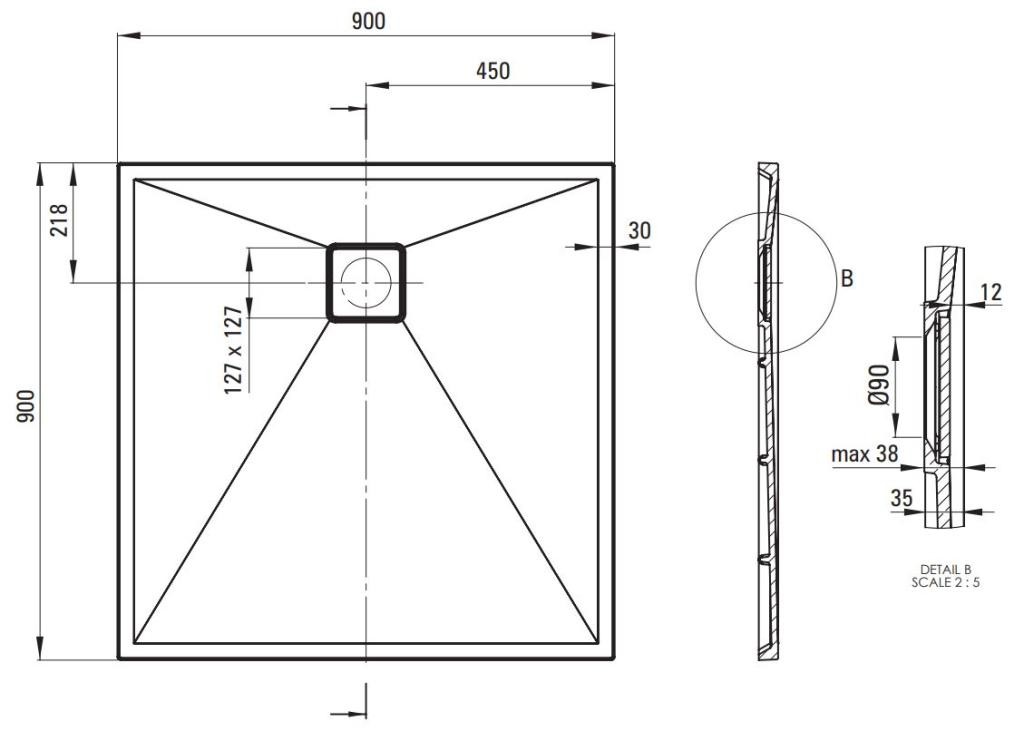 6 990 KčDEANTE – Correo antracit metalic – Granitová sprchová vanička, čtvercová, 90×90 cm KQR_T41B