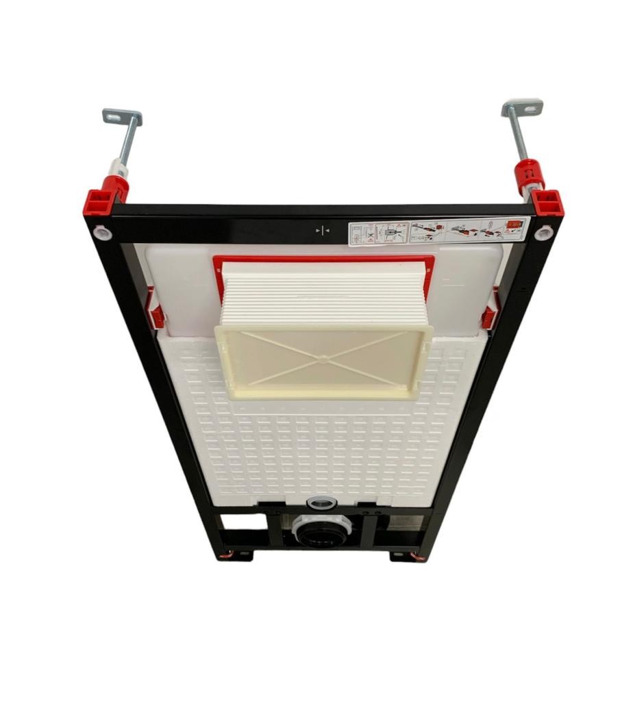 Podomítkový rám je určen k zavěšení WC mís. Je vybaven systémem dvojitého splachování a dodatečným zvukotěsným těsněním. Celek je stabilizován odolným ocelovým rámem.