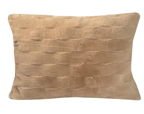 Dekorační polštář 50×70 cm v hnědé barvě vnese do interiéru kousek luxusu. Jeho povrch je mimořádně hebký a věrně imituje králičí kožíšek.