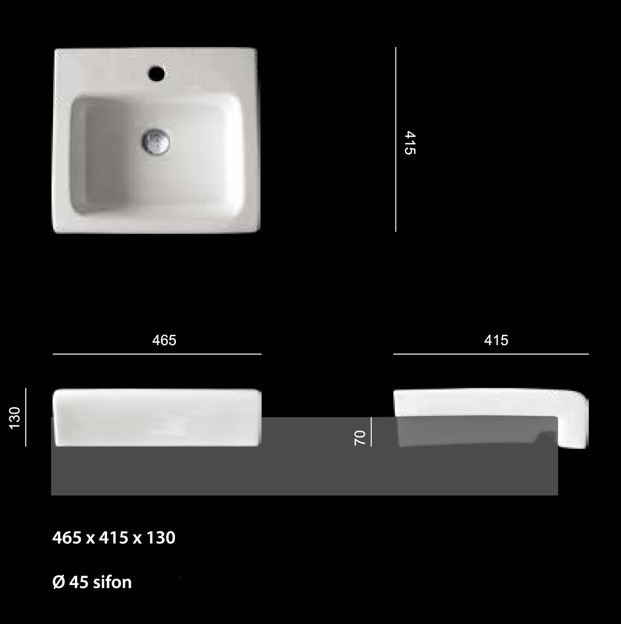 Částečně vnořené umyvadlo vhodné pro osazení do koupelnových pultů s otvorem pro baterii.