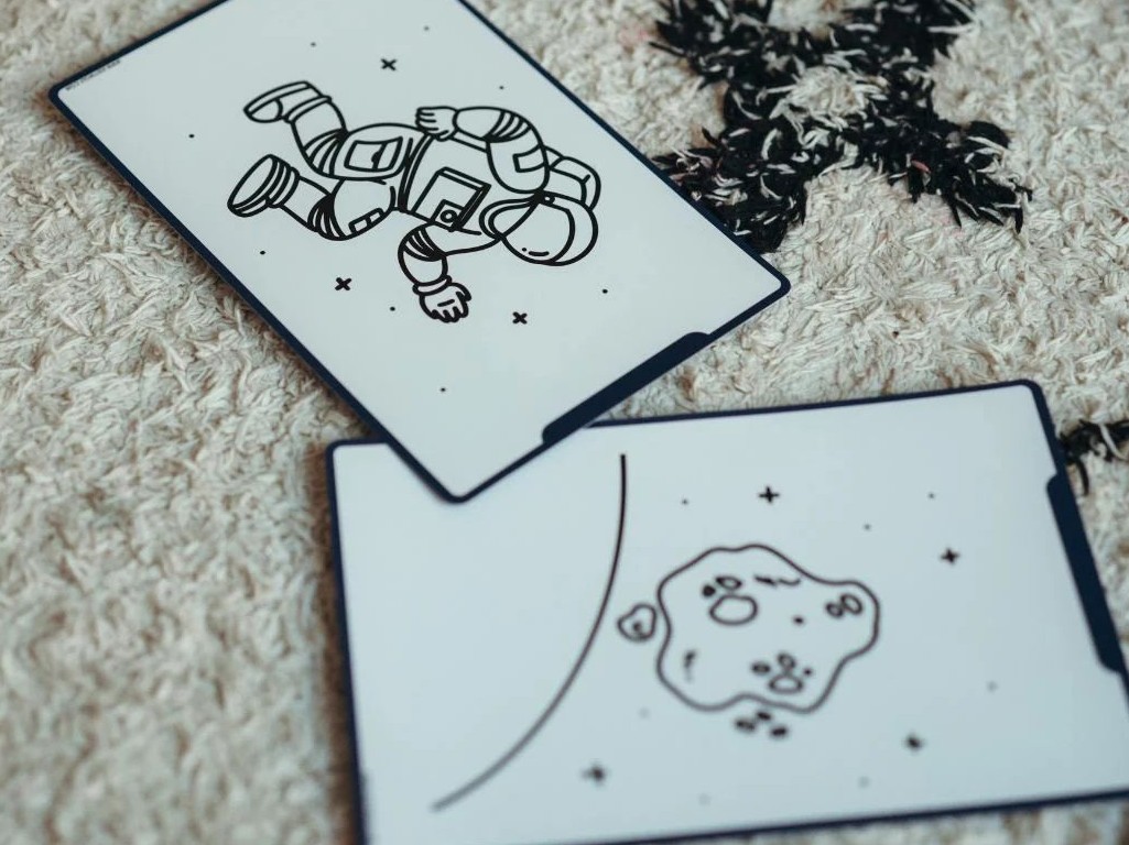 Rozšiřte dětem možnosti zábavy a tvoření na kreslícím tabletu KIDYDRAW MINI. S náhradní sadou kartiček získají 60 tematických šablon na obkreslování s motivy galaxie a dinosaurů. Obkreslováním obrázků děti rozvíjí jemnou motoriku a zabaví se na dlouhé hodiny doma i na cestách.