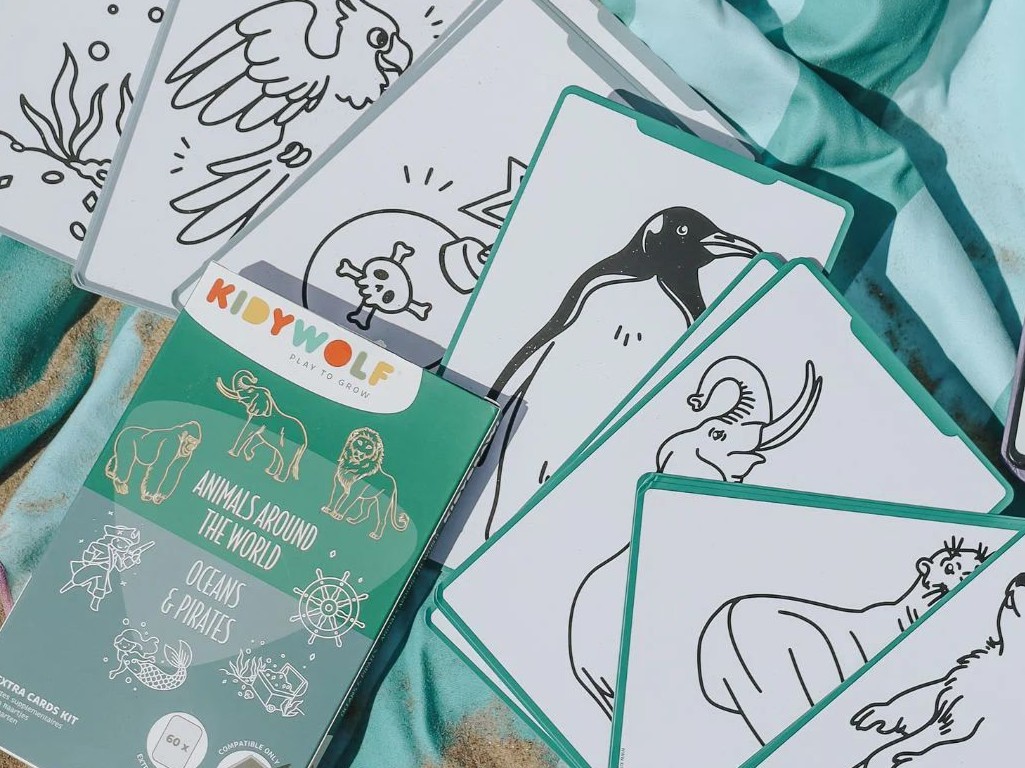 Rozšiřte dětem možnosti zábavy a tvoření na kreslícím tabletu KIDYDRAW MINI. S náhradní sadou kartiček získají 60 tematických šablon na obkreslování s motivy zvířat z celého světa, mořského světa i pirátských dobrodružství. Obkreslováním obrázků děti rozvíjí jemnou motoriku a zabaví se na dlouhé hodiny doma i na cestách.