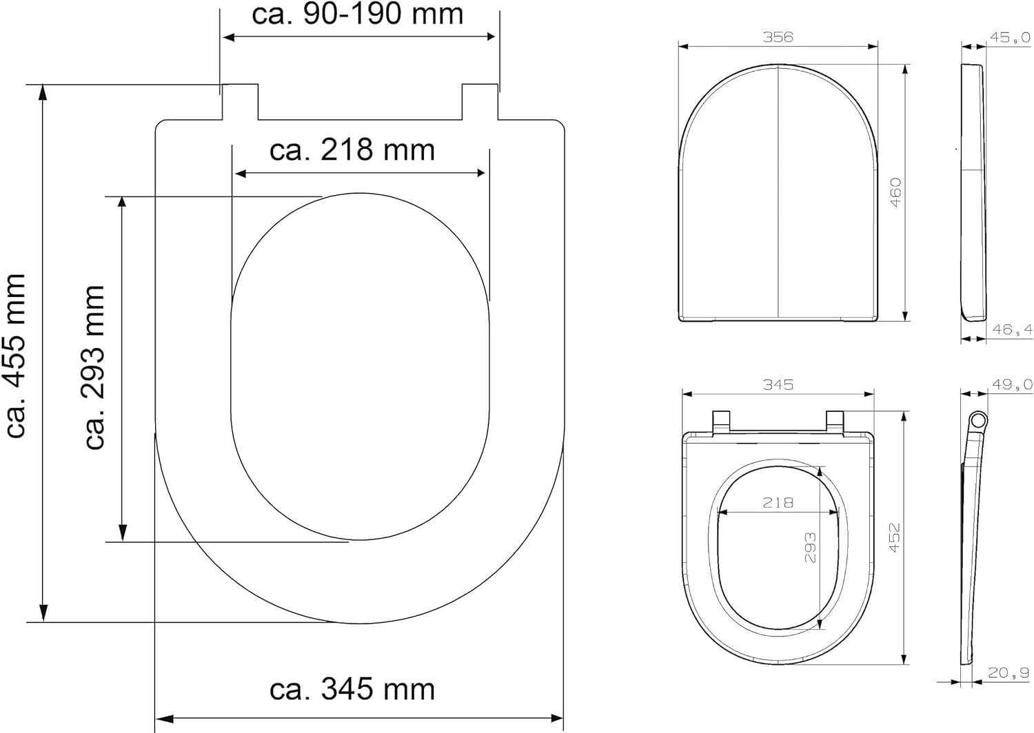 Vhodné pro toalet ve tvaru D