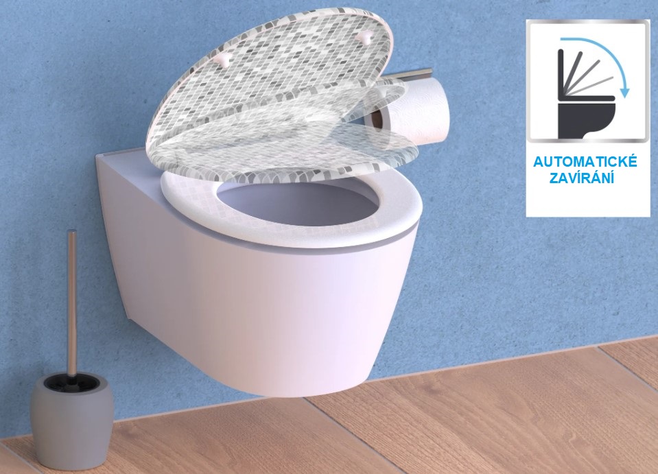 Duroplastové WC sedátko MOSAIC GREY, s automatickým spouštěním