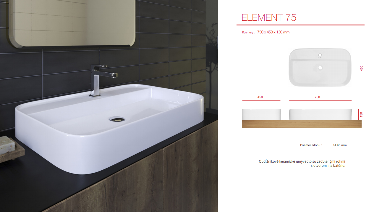 ELEMENT 75 keramické umyvadlo na desku