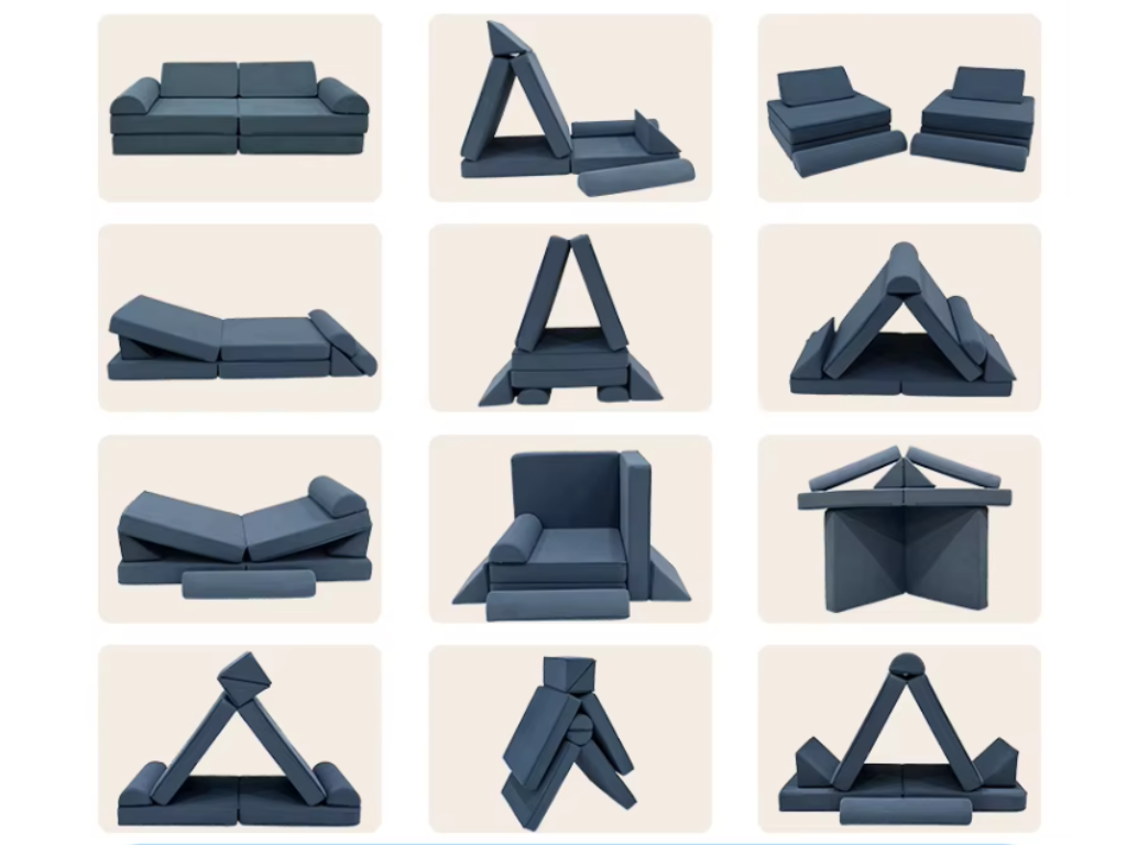 Spousta možností – pohovku je možné různě polohovat, rozkládat, skládat, proměnit ji v křesla, lehátka, domeček nebo bunkr, v opičí dráhu nebo prolézačku.