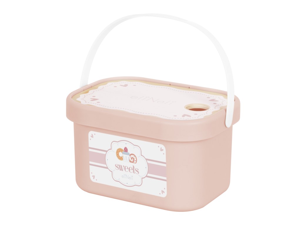 Úložný box – plastový kyblík je praktickým úložným boxem pro čajový set a dřevěné dobroty, které obsahuje.