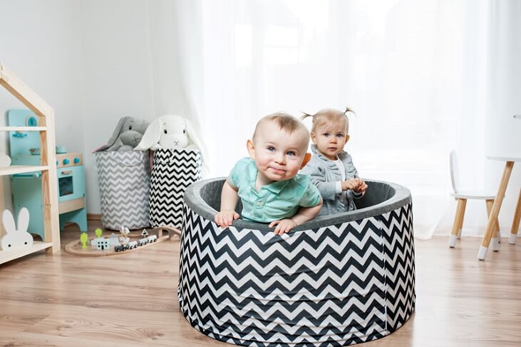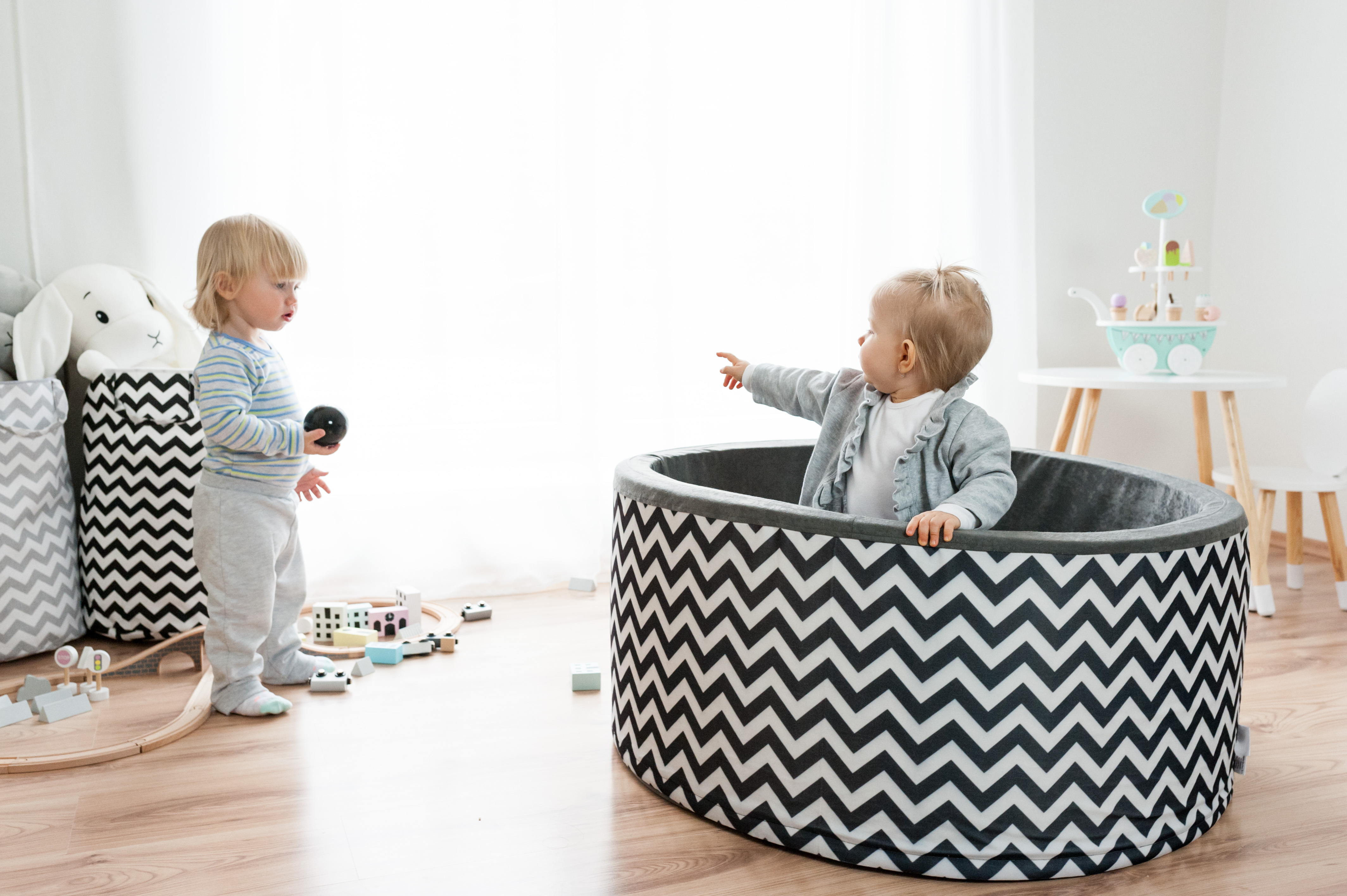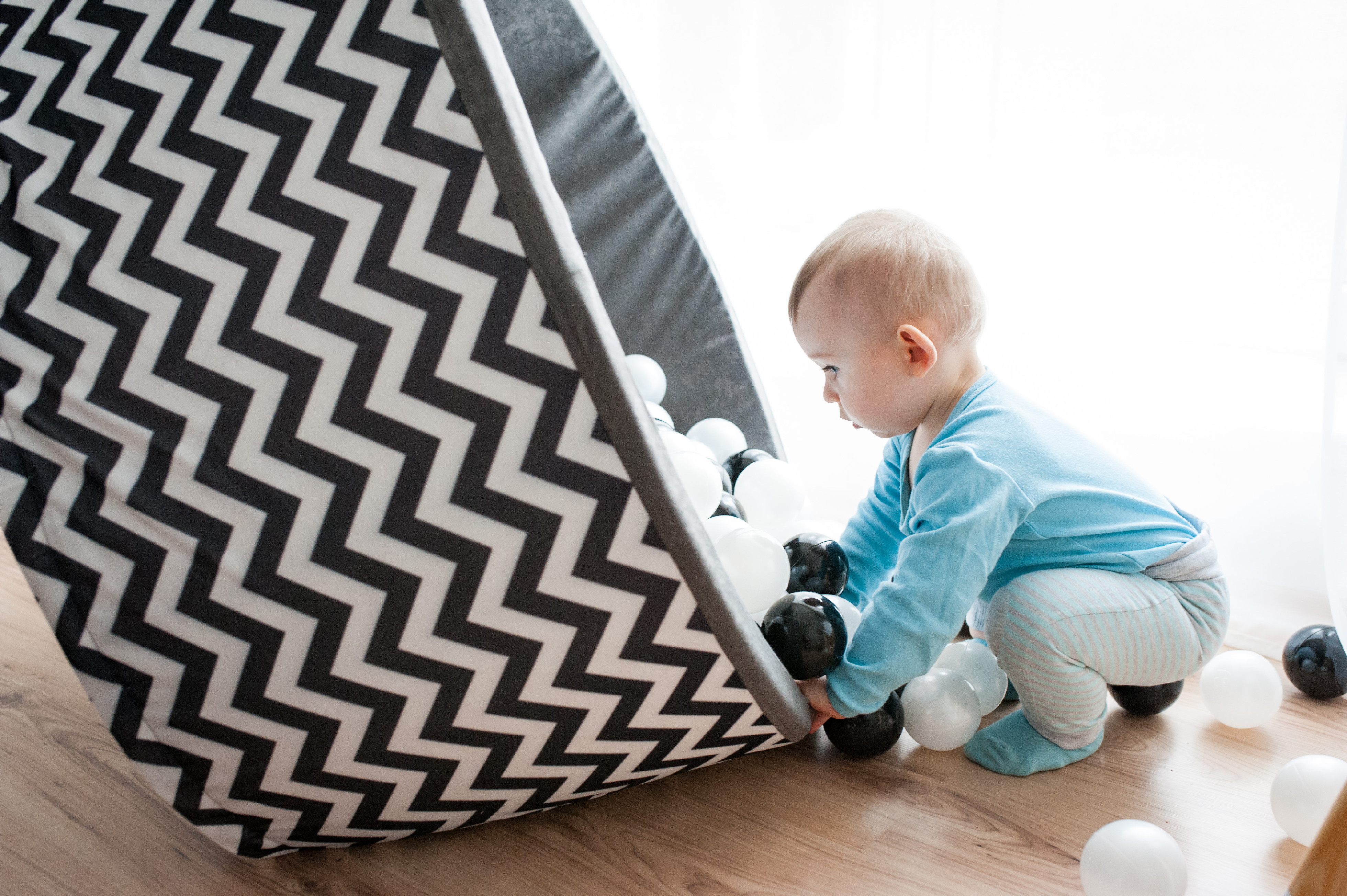 Moderně zpracovaný dětský suchý bazének s cik cak černo-bílým zdobením o průměru 90 cm a výšce 40 cm s 200 míčky v černé a perleťové barvě si okamžitě zamiluje každé dítě. V měkkém bazénku s míčky si mohou pod dohledem dospělého užít spoustu zábavy už děti od 6 měsíců. Mohou pást koníky, pokoušet se zdravotně nezávadných míčků dotknout, postrčit je a sledovat, kam se budou kutálet. Čím jsou děti starší, tím více legrace si s bazénkem užijí. Od poklidného kutálení, převalování se ve vrstvě míčků, schovávání se, pohazování míčků, klouzání se, až po skákání, dovádění a rozhazování míčků po okolí. Abyste se o bezpečí svých dětí nemuseli obávat, je bazének vyroben z velmi pružného, měkkého a netoxického materiálu vhodného pro děti.