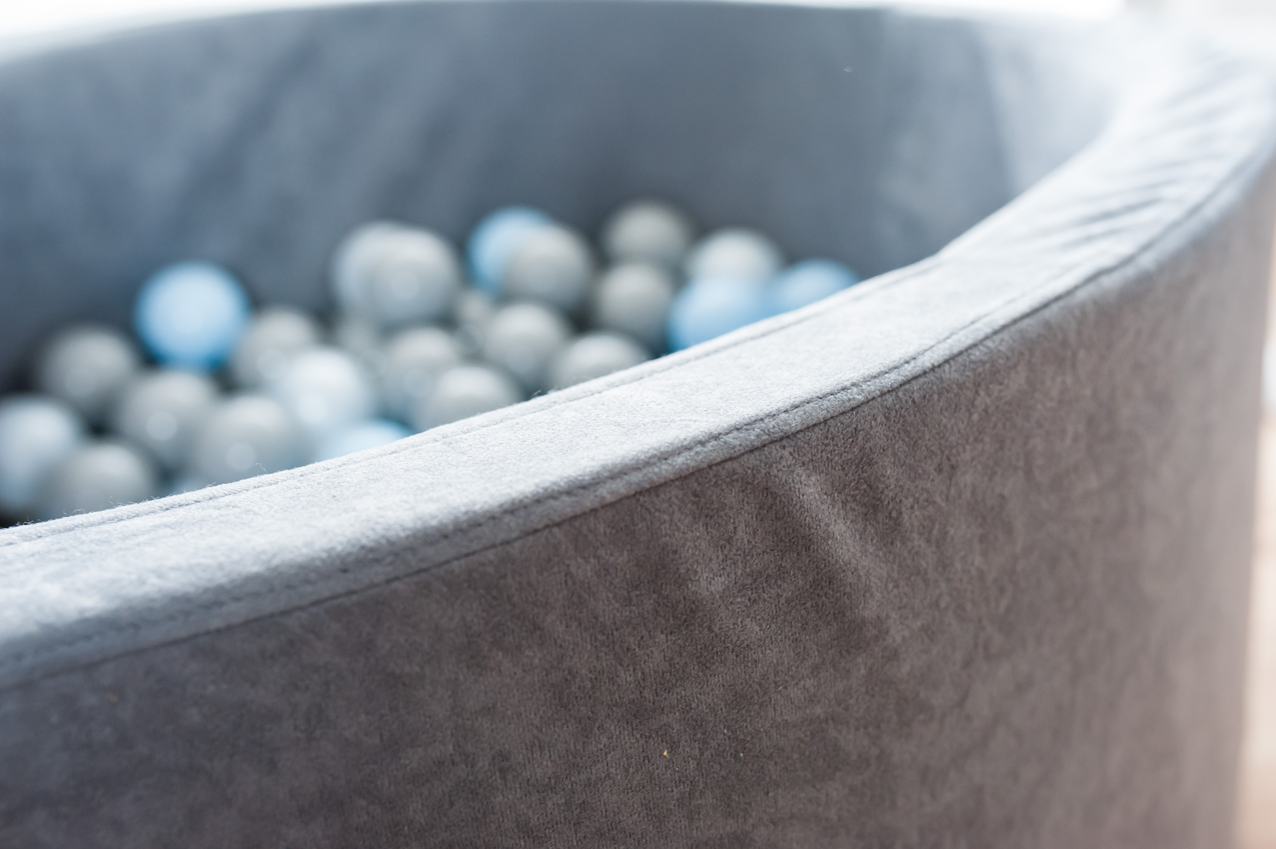 Stěny bazénku jsou vyplněny polyuretanovou pěnou o šířce 5 cm. Bazének je potažen šedou semišovou látkou příjemnou na dotek. Potah je díky všitému zipu odepínací a lze ho tak kdykoliv sundat a vyprat. Součástí bazénku je 200 ks barevných míčků o průměru 7 cm, které mají certifikaci, jsou kvalitní a nezávadné. Plastové kuličky jsou vyrobeny z netoxického materiálu, které jsou bezpečné pro děti, s certifikací CE. Vybírat můžete ze dvou barevných kombinací míčků: bílá (50 ks) + šedá (50 ks) + světle růžová (100 ks) nebo bílá (50 ks) + šedá (50 ks) + světle modrá (100 ks). Tento bazének verze standard je vhodný i na chladnější podlahu díky zvýšené izolační vrstvě dna o tloušťce 3 cm. Ostatní suché bazénky z naší nabídky si můžete prohlédnout zde.