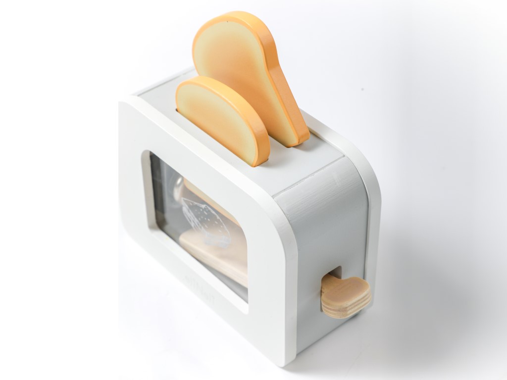 Skandinávský styl – neutrální barevné provedení a jedinečný design umožňuje doplnit toustovačem jakoukoliv dětskou kuchyňku nebo obchůdek.