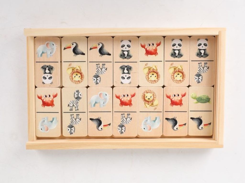 Vzdělávací hračka pro děti. Podporuje rozvoj dovedností. Dřevěné domino je ideální pro rozvoj logického myšlení a jemné motoriky dětí. Hračka je navržena tak, aby děti bavila a zároveň je učila. Každý z 28 dílků je zdobený barevnými obrázky zvířátek…