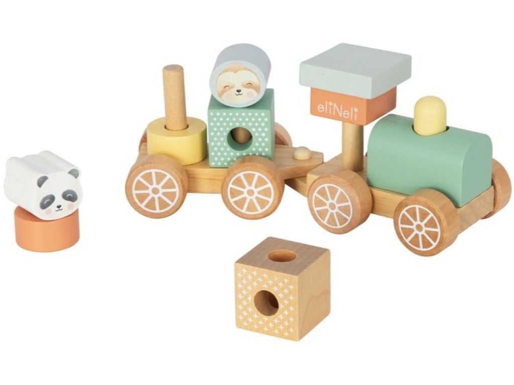 eliNeli Dřevěný vláček s kostkami – zvířátka ze ZOO