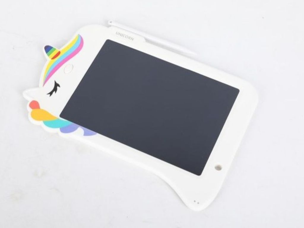 Z prvního tabletu bude nadšené každé dítě toužící po technických vymoženostech. Kreslící tabulka pro děti, v originálním designu, v podobě bílého jednorožce umožní dětem hrát si na tabletu – kreslit a psát stále dokola a dokola. Kreslící tabulka totiž umožňuje kreslit barevná umělecká díla, pochlubit se s nimi, smazat pomocí tlačítka a vytvořit nová. Černá tabulka (tablet) může posloužit i k výuce, k prvnímu seznamování s tvary, písmenky nebo číslicemi. Při hře s tímto tabletem děti rozvíjí svou fantazii a kreativitu, učí se novým znalostem (za pomoci rodičů se seznamují s abecedou, čísly a počty, geometrickými tvary).