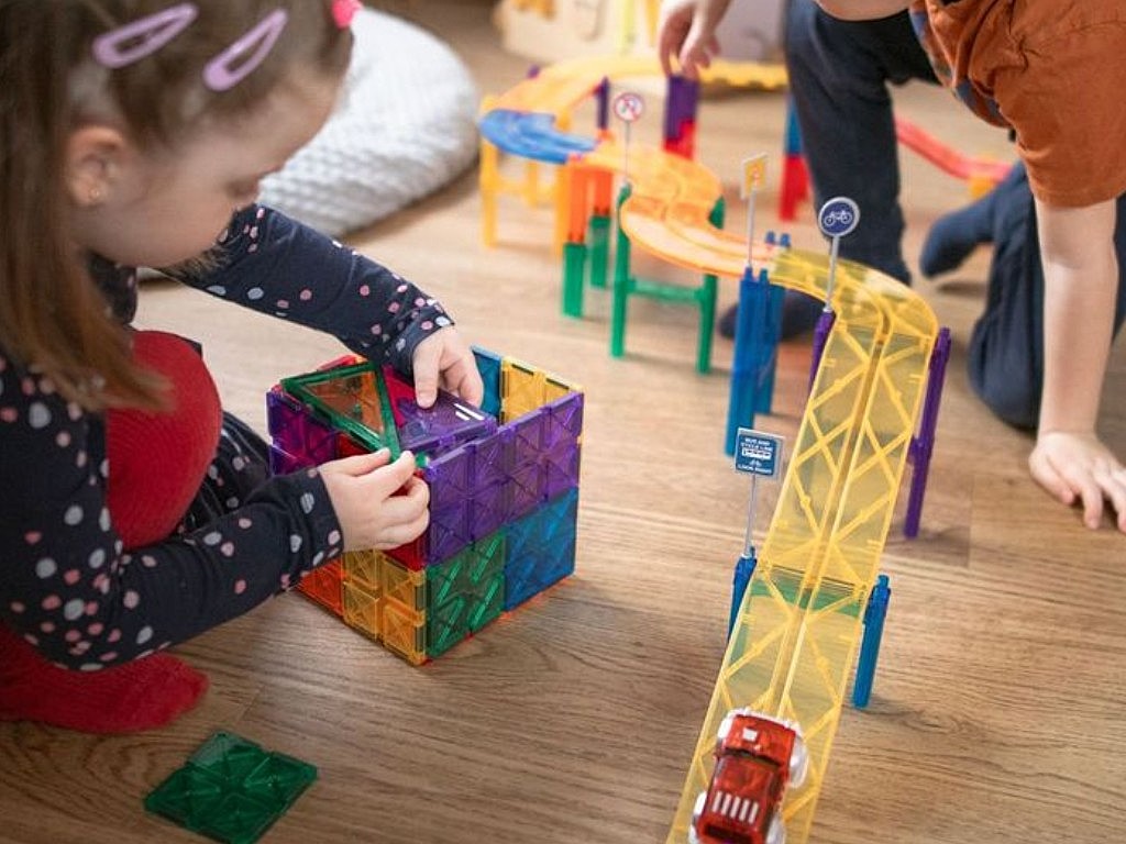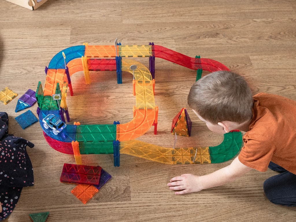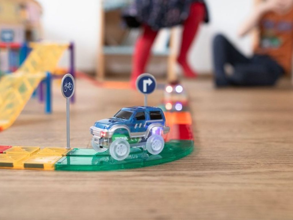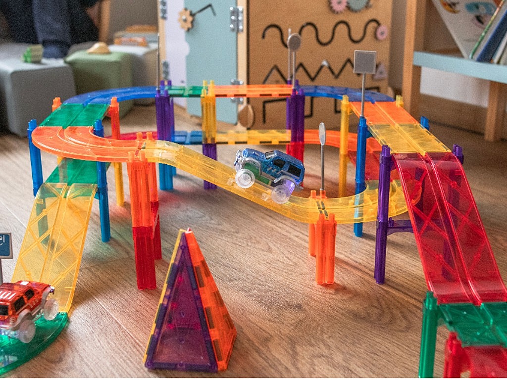 Kreativní stavebnice s magnety pro stavbu autodráhy