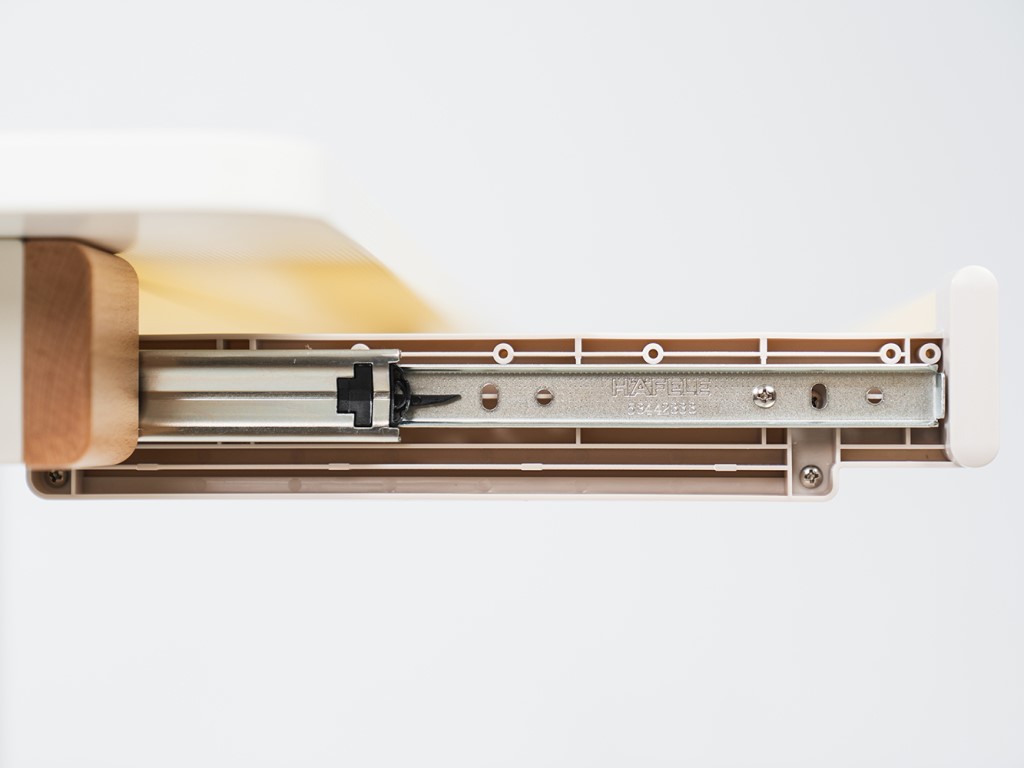Materiál: laminovaná dřevěná deska, středně uhlíková ocel, plast.