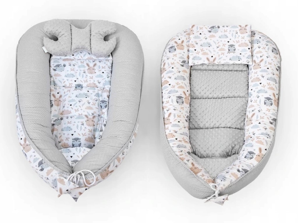 Oboustranné hnízdečko z jemného a hebkého materiálu pohodlně obepne miminko ze všech stran. Dodá mu pocit bezpečí, miminko se bude cítit jako u maminky v bříšku. Své využití najde nejen v dětské postýlce nebo kolébce, ale i v kočárku.