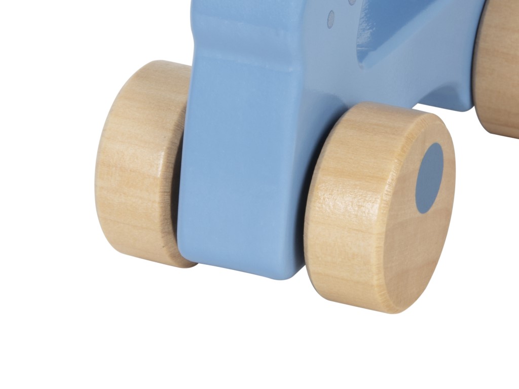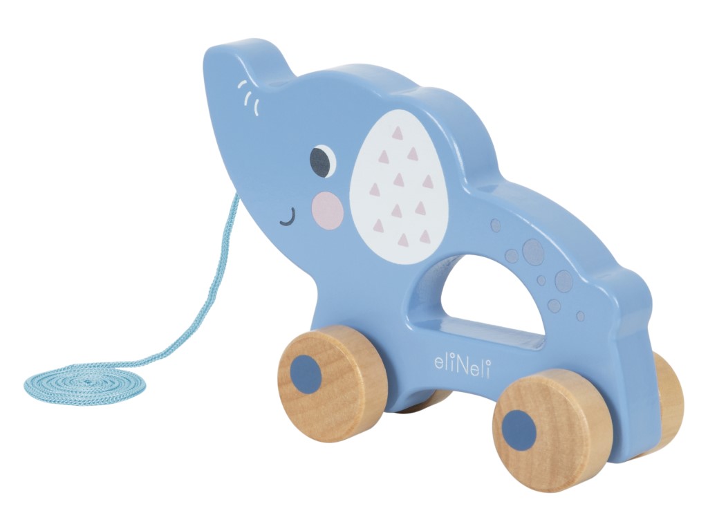 Dřevěná tahací hračka v podobě roztomilého modrého slona umožní dětem vzít na procházku po dětském pokoji, domě či bytě samotného zvířecího velikána. Stačí uchopit konec provázku a dřevěný slon na kolečkách bude poslušně vaše dítko pronásledovat na každém kroku. Hra se sloníkem a jeho tahání zdokonaluje motorické dovednosti a motivuje děti k pohybu. Tvar dřevěné tahačky je navržen tak, aby umožnil dětem snadný a pohodlný úchop a manipulaci s hračkou. K nátěru se používají vodou ředitelné barvy a laky, netoxické, vhodné a bezpečné pro děti.
