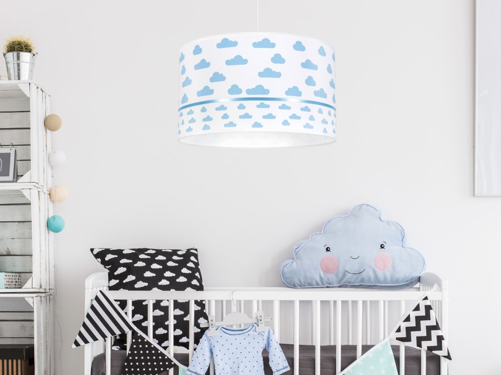 Designový dětský lustr s obláčky v pastelové modré barvě je krásnou dekorací a doplňkem do dětského pokoje. Závěsný lustr osvětlí dětské království, vytvoří potřebné světlo pro hru a další aktivity. Díky neutrálním barvám a motivu je dětský lustr vhodný do pokojíčku holčiček i chlapců.