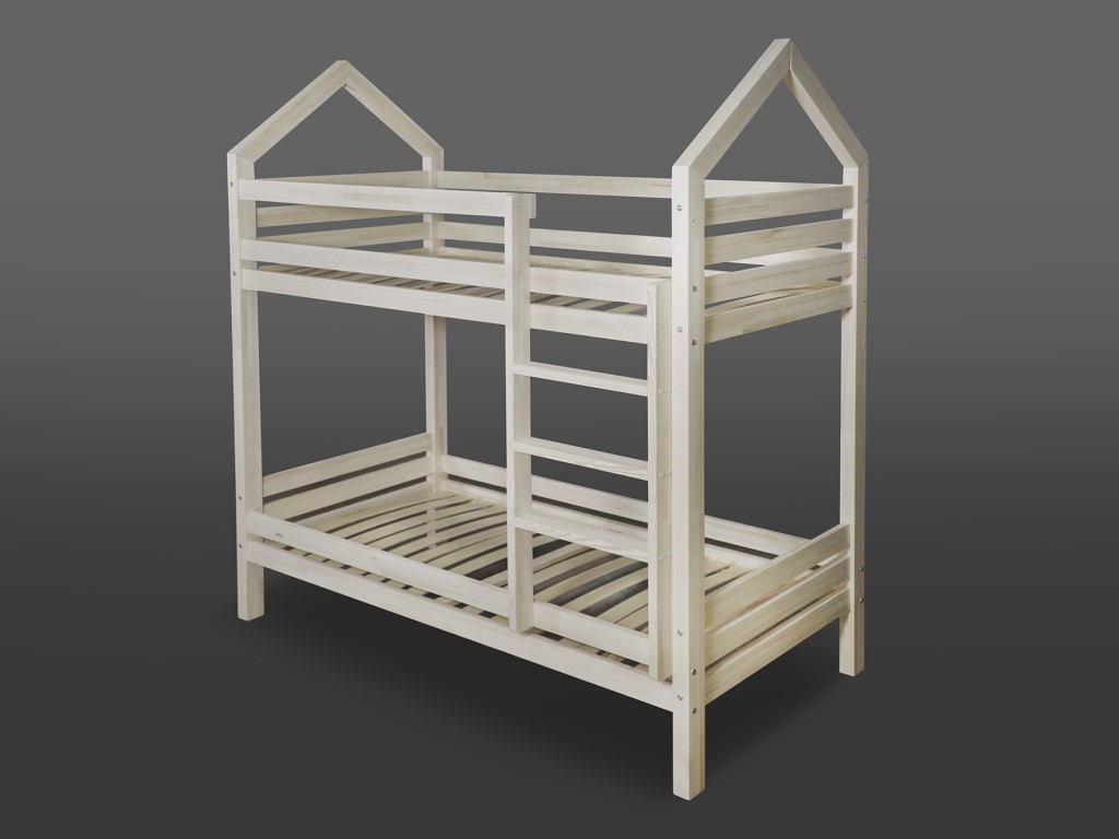 Ekologická dřevěná postýlka ve skandinávském stylu, patrová, v moderním bílém provedení.
