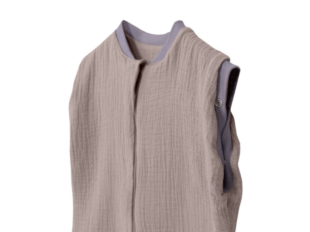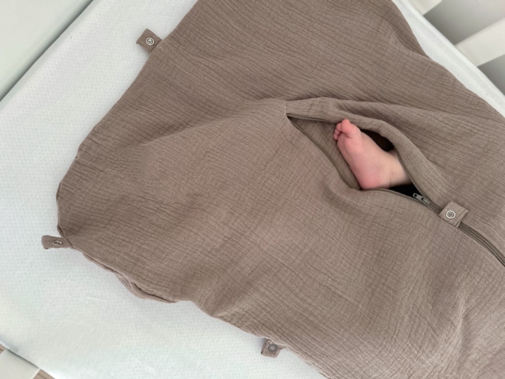 Dopřejte svému děťátku klidný, bezpečný a pohodlný spánek s mušelínovým spacím pytlem v neutrální hnědé barvě. Pytel na spaní pro miminka je vyrobený ze dvou vrstev nejkvalitnějšího, prodyšného bavlněného mušelínu s dvojitou gázou, výjimečně měkkého a šetrného k citlivé pokožce novorozenců.