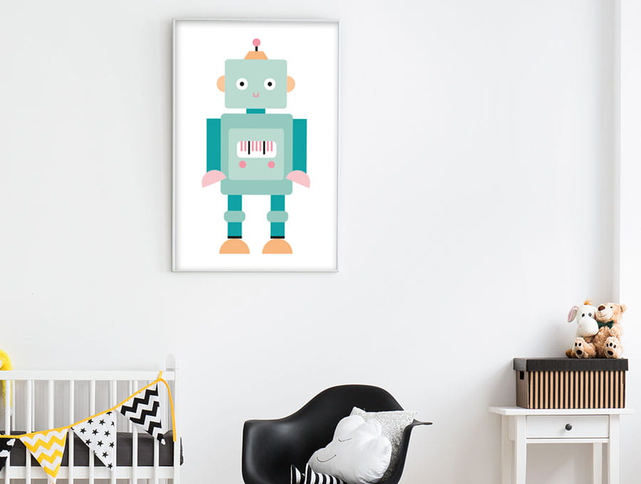 Plakát robot je vkusná dekorace do pokojíčků kluků, jak pro menší chlapce, tak i pro ty větší, kteří už nechtějí dekorace se zvířátky. Cena je za samotný plakát bez rámečku.