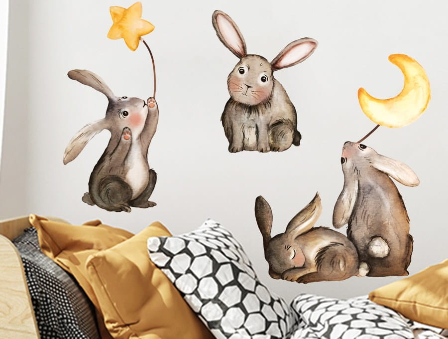 Velice originální nálepky na zeď jsou vyráběny z fólie nejvyšší kvality s certifikátem BASF. Díky vystřihnutí přesně podle obrysu můžete zajíčky nalepit jak se vám to bude nejlépe v místnosti hodit.