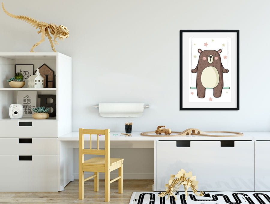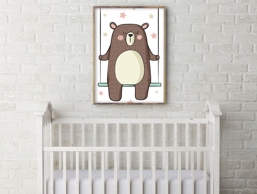 Medvídek na houpačce je velice roztomilý a veselý obrázek, který na dětských tvářích vykouzlí úsměv. Je vhodný do pokojů miminek i malých školáků. Cena je za samotný plakát bez rámečku, abyste si mohli dekoraci sami doladit rámováním podle barev a stylu stávajího vybavení pokoje.