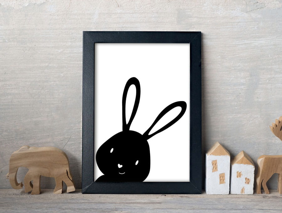 Plakát s králíčkem je designově vhodná dekorace hlavně do pokojů odrostlejších dětí. Ale díky kontrastu černé a bílé bude prospěšný i do pokojíčků miminek. Barva plakátu se hodí na různé odstíny stěn. Cena je za samotný plakát bez rámečku. Dekorace je zajímavá svou jednoduchostí, kterou vkusně doladí dnešní moderní pokojíčky. Zároveň zajíček působí roztomile.