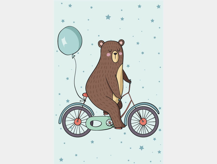 Medvídek na kole je velmi veselý a rozpustilý obrázek, který na dětských tvářích bezpochyby vykouzlí úsměv. Motiv se do dětského pokoje náramně hodí. Cena je za plakát bez rámu, což vám dává možnost kreativně dekoraci doplnit v souladu s designem, stylem, barvami doplňků v místnosti.