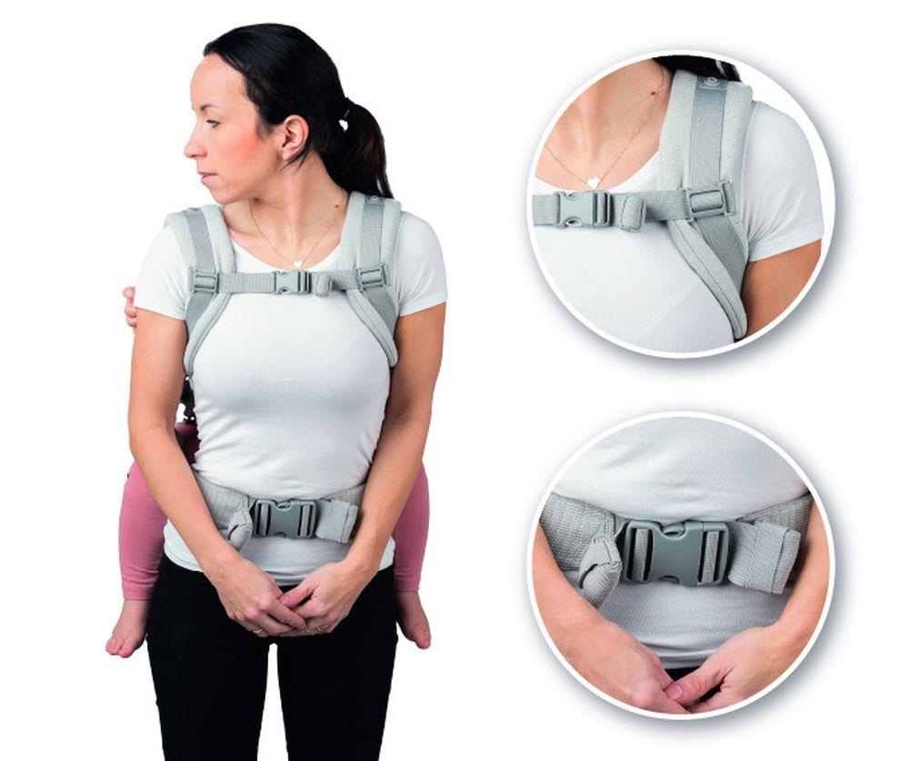 2 nosné pozice – na břiše od 3 měsíců a na zádech od 12 měsíců.