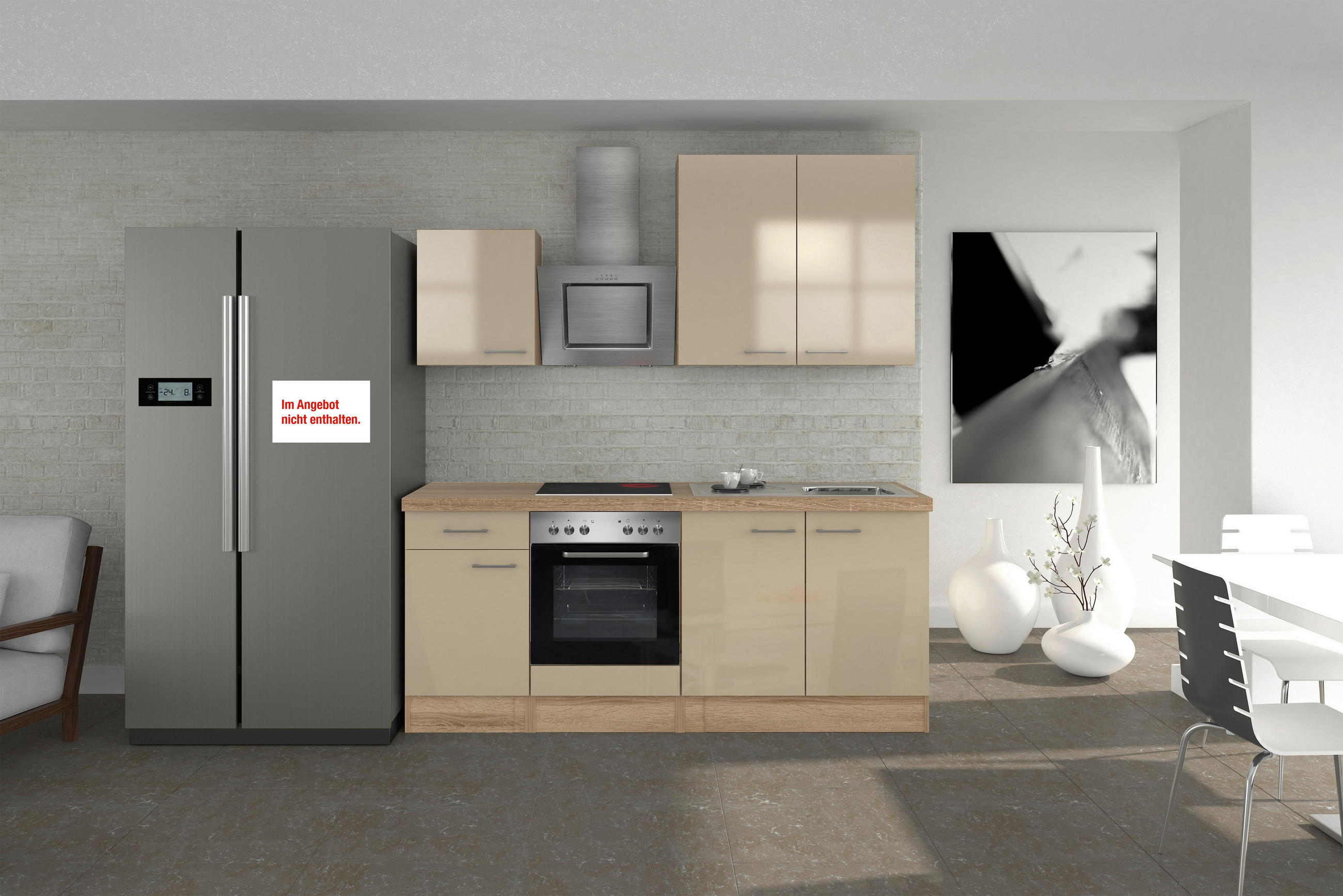-15%KUCHYŇ. SKÁ LINKA NEPAL 210 – ONLINE D,00008355, KASCHMIR GL – KP+APL: SONOMA EICHE – INKL. E-GERÄTE UND SPÜLE
